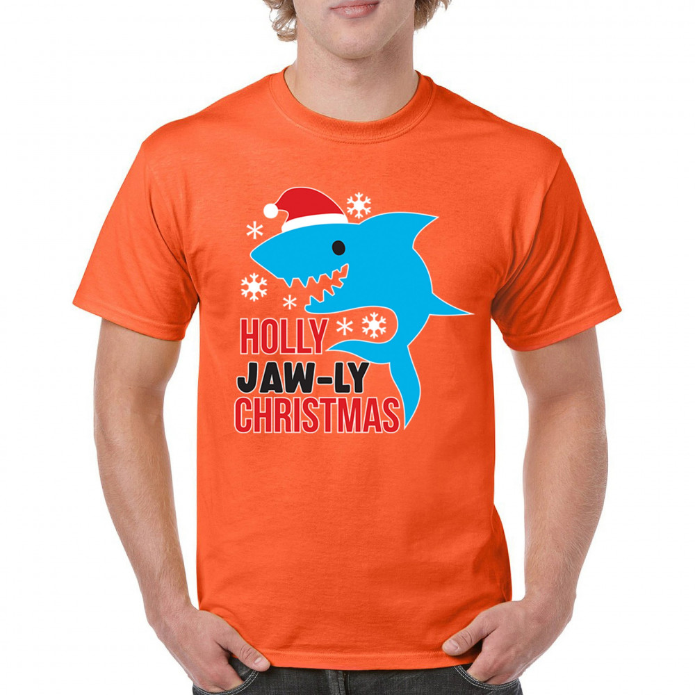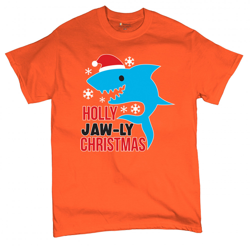 A fun Holly Jaw-ly Christmas design featuring a cheerful shark in a Santa hat with bright snowflake accents. Ideal for beach lovers, ocean fans, pun humor enthusiasts, Christmas parties, festive gatherings, white elephant events, and lighthearted winter celebrations. Brings a playful coastal vibe to holiday season outfits and gifts.