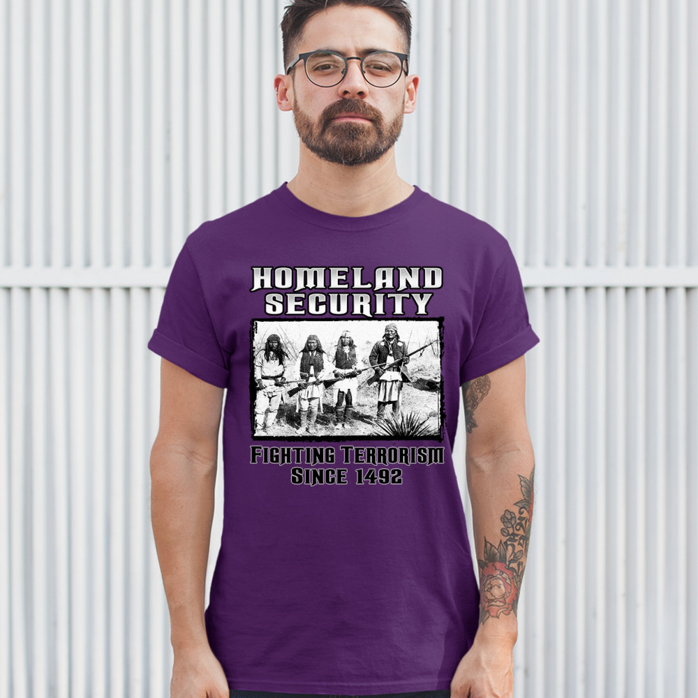 HOMELAND SECURITY t-shirt native american indigenous patriotic men's tee purple