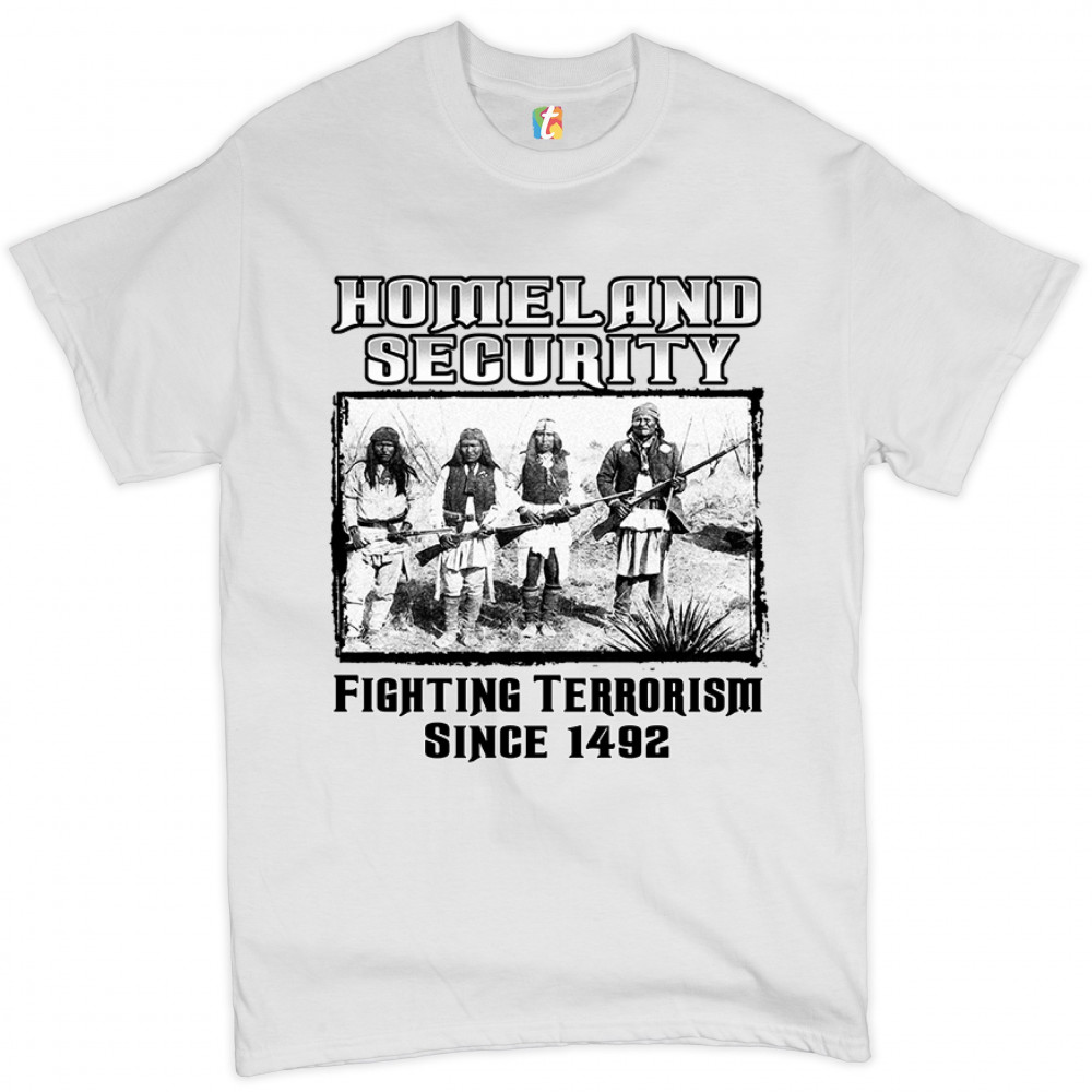 HOMELAND SECURITY t-shirt native american indigenous patriotic men's tee white