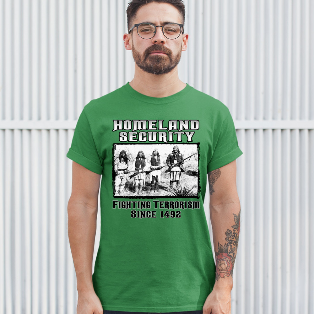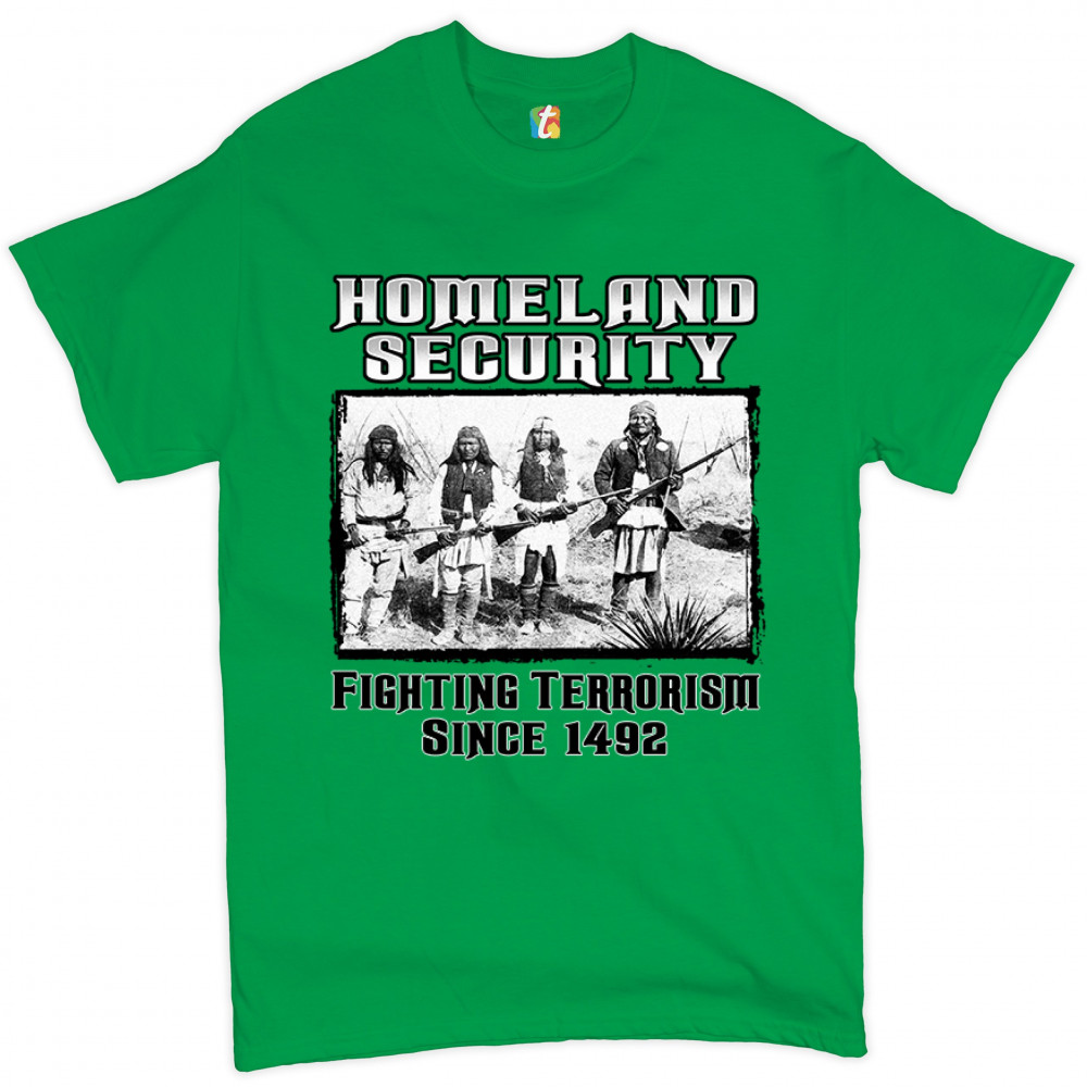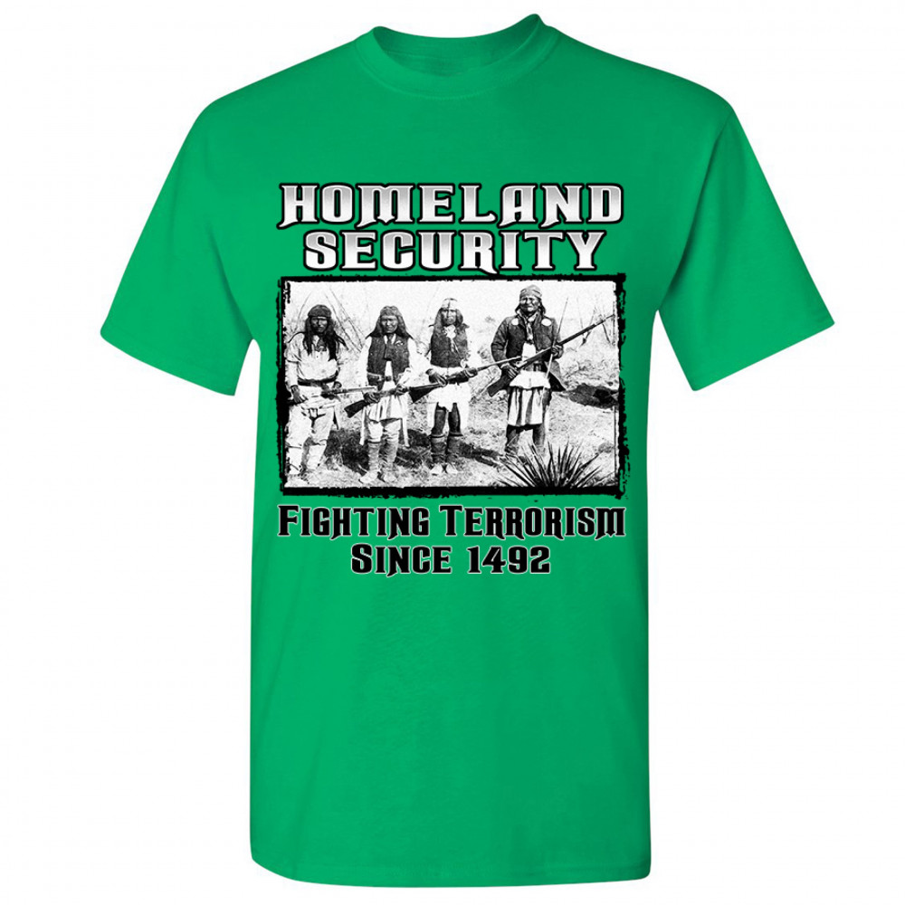 HOMELAND SECURITY t-shirt native american indigenous patriotic men's tee green