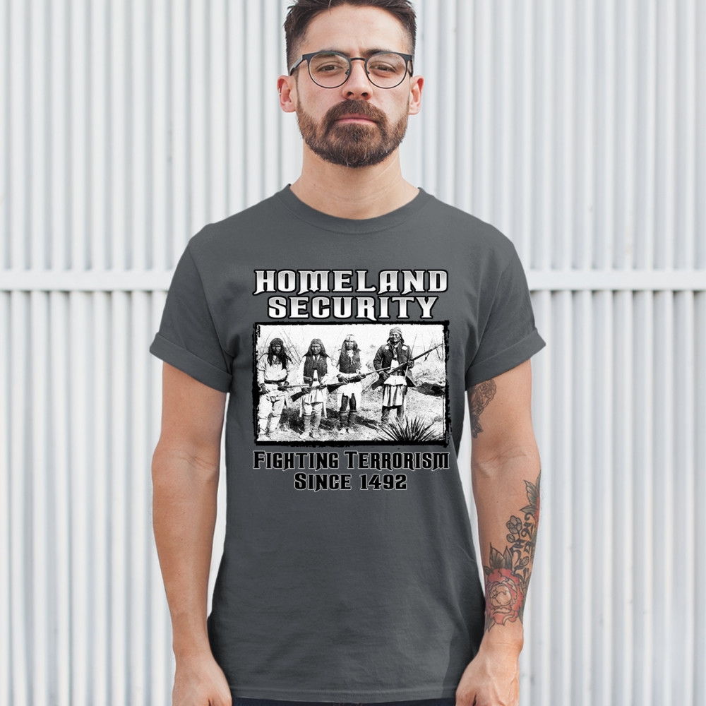 HOMELAND SECURITY t-shirt native american indigenous patriotic men's tee charcoal