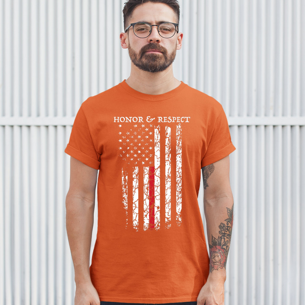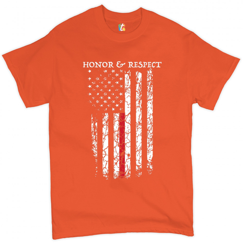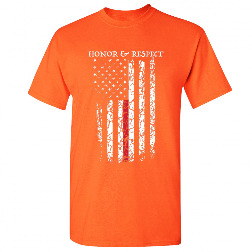 HONOR & RESPECT THIN RED LINE t-shirt firefighter american flag men's tee orange