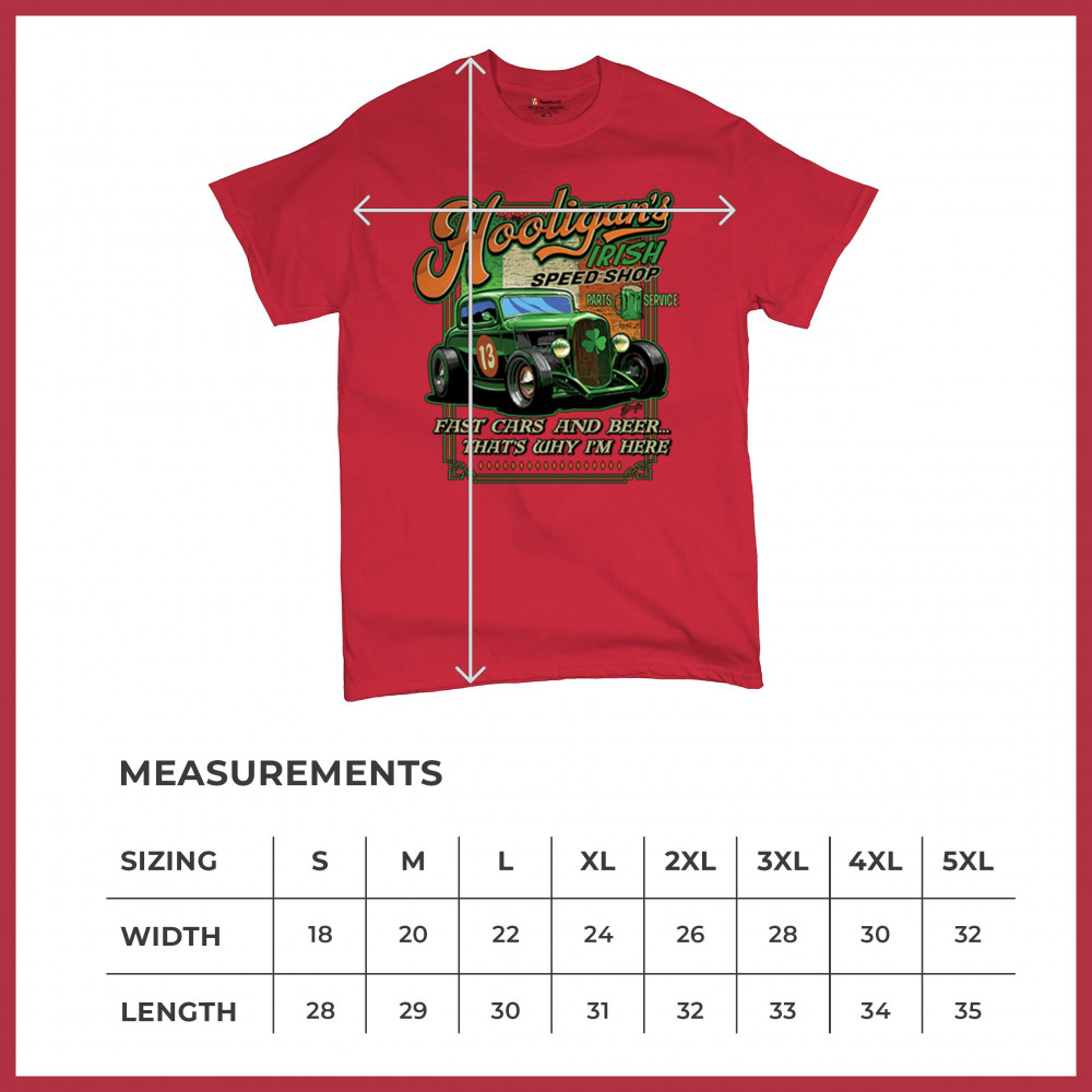 Celebrate St. Patrick's Day in style with the Hooligan Speed Shop T-Shirt, featuring a bold design of the Irish flag perfect for showcasing your pride while adding flair to any festive occasion.