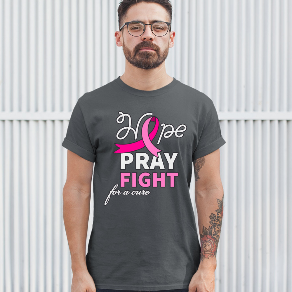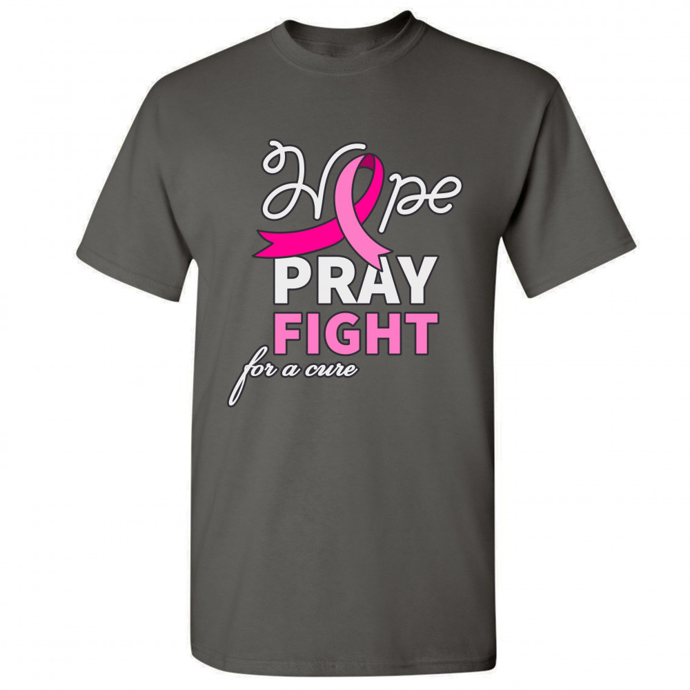 HOPE PRAY FIGHT FOR A CURE t-shirt cancer awareness pink ribbon men's tee charcoal