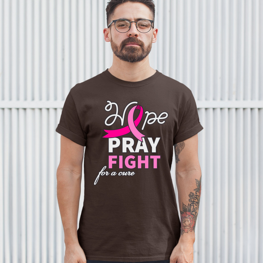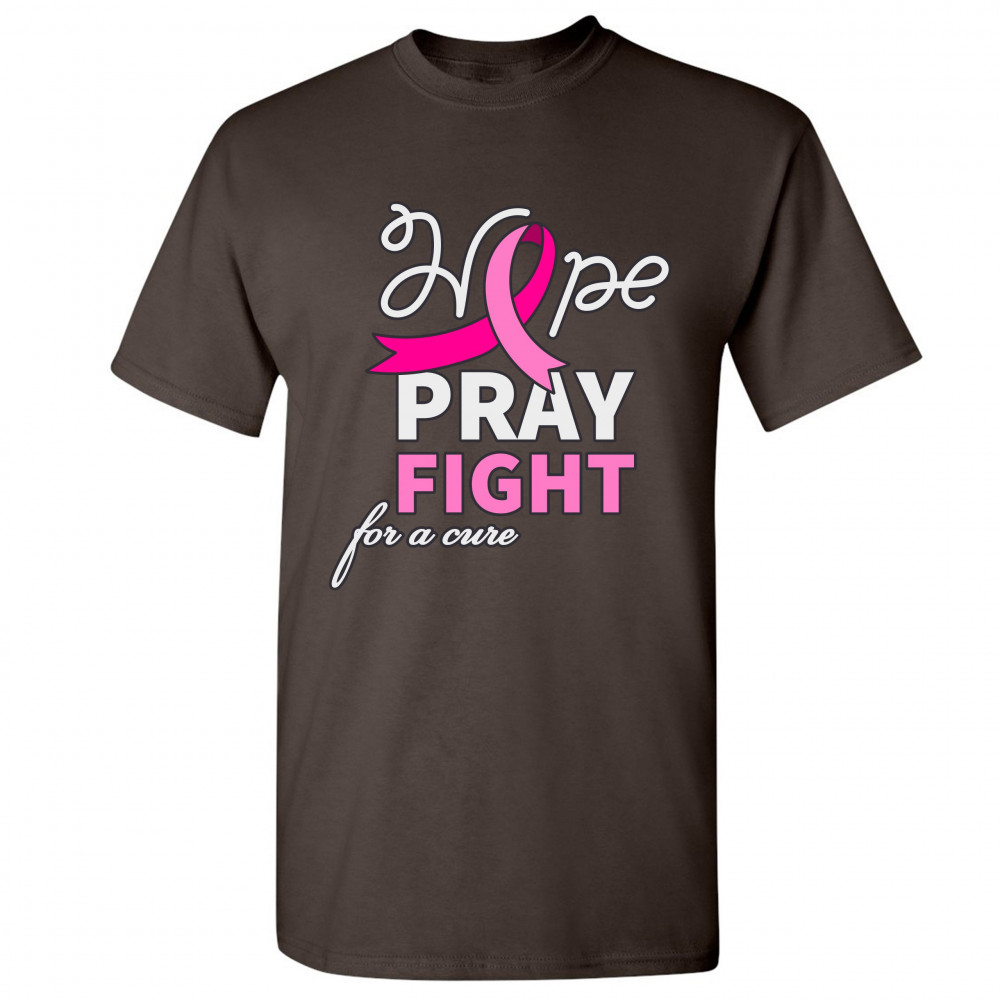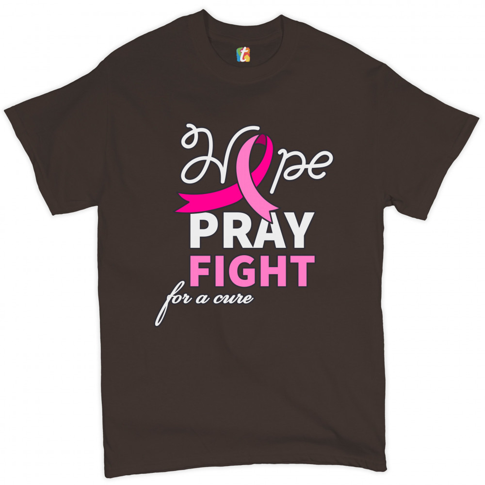 HOPE PRAY FIGHT FOR A CURE t-shirt cancer awareness pink ribbon men's tee brown