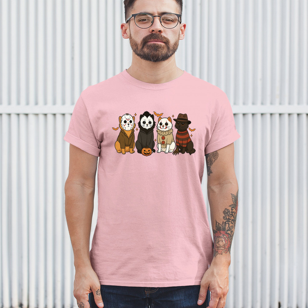 Get into the Halloween spirit with this Horror Cats Halloween design featuring spooky felines in creepy costumes. From Jack o Lantern details to Haunted House energy, it’s perfect for celebrating October 31 with festive style. A playful blend of Halloween vibes, autumn night chills, and witch-inspired magic, this design makes a great Halloween outfit for cat lovers and spooky fans alike.