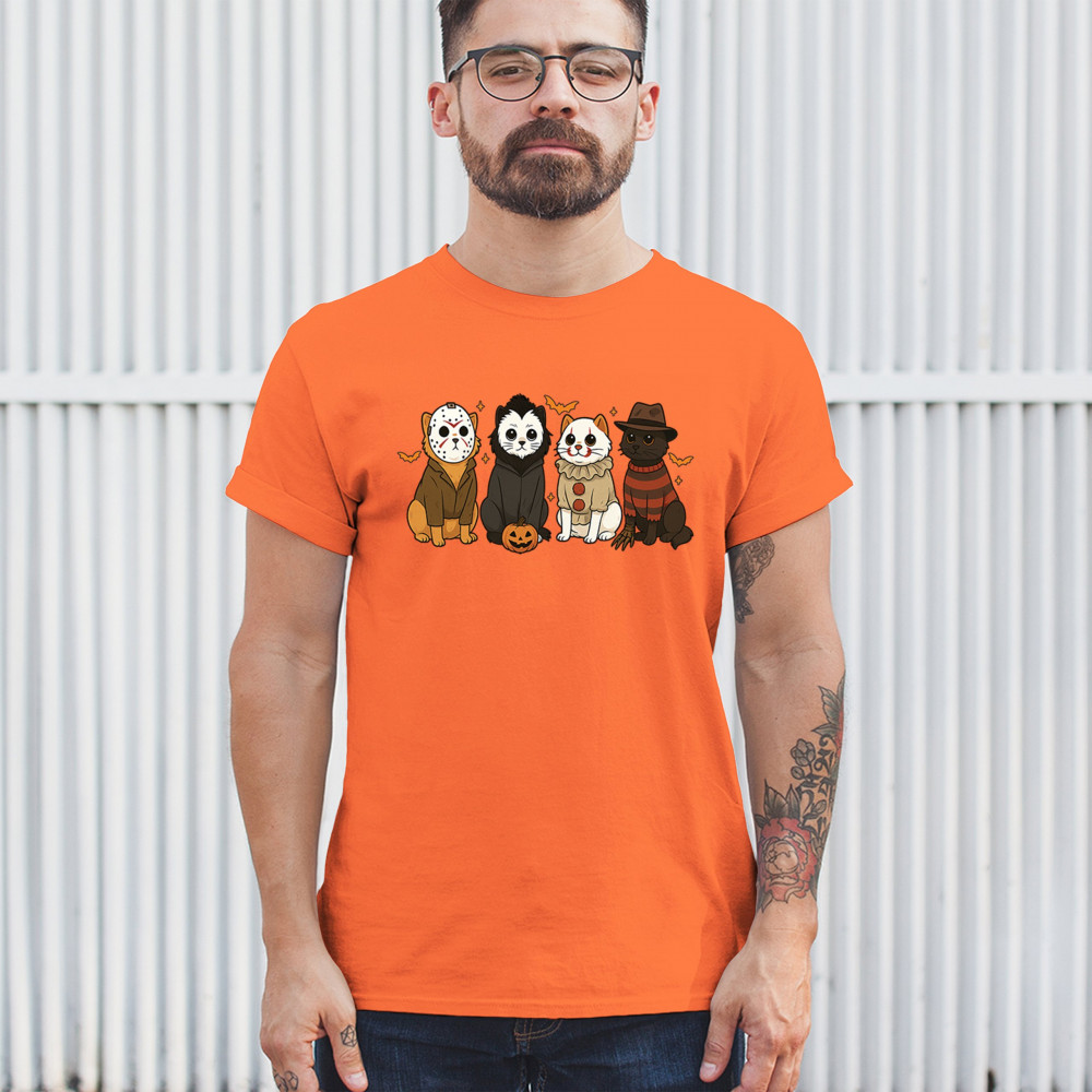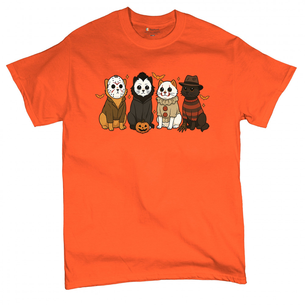 Get into the Halloween spirit with this Horror Cats Halloween design featuring spooky felines in creepy costumes. From Jack o Lantern details to Haunted House energy, it’s perfect for celebrating October 31 with festive style. A playful blend of Halloween vibes, autumn night chills, and witch-inspired magic, this design makes a great Halloween outfit for cat lovers and spooky fans alike.