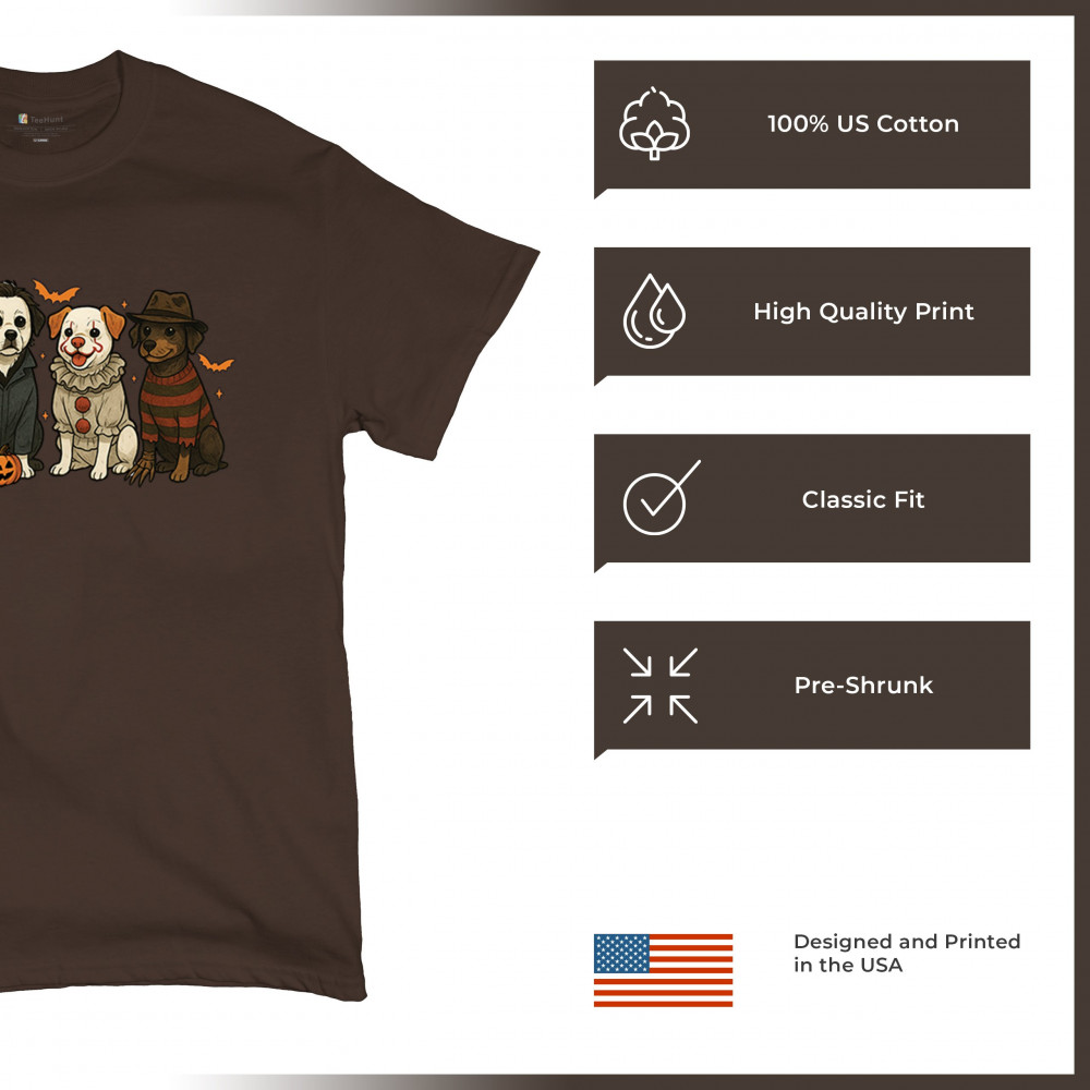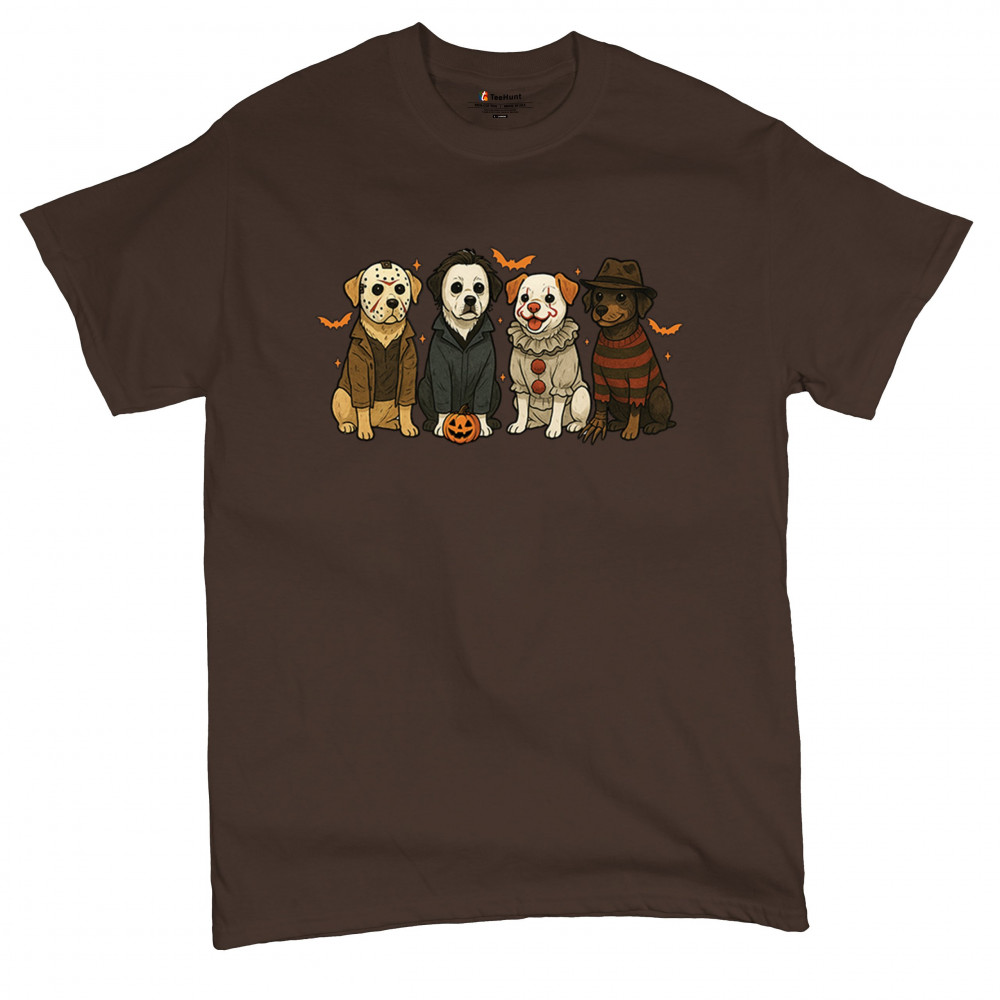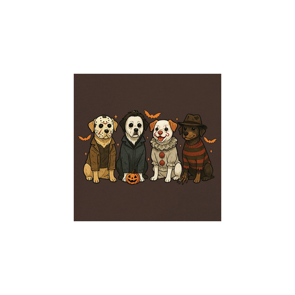 Celebrate Halloween with the Horror Dogs design featuring pups in creepy costumes inspired by spooky icons. A perfect pick for October 31 haunted house visits, autumn nights, or parties full of Halloween vibes. Whether you love dogs, witches, or pumpkin head fun, this festive design makes a playful addition to the spooky season.