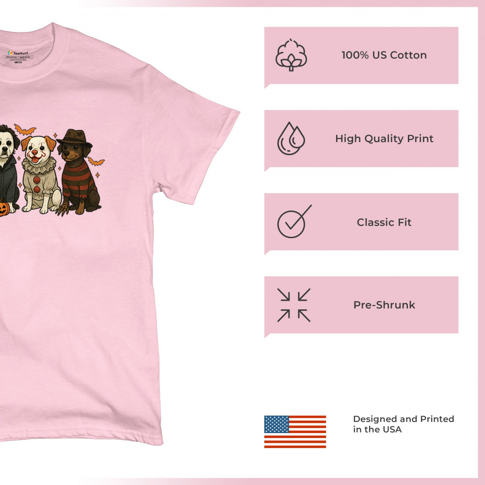 Celebrate Halloween with the Horror Dogs design featuring pups in creepy costumes inspired by spooky icons. A perfect pick for October 31 haunted house visits, autumn nights, or parties full of Halloween vibes. Whether you love dogs, witches, or pumpkin head fun, this festive design makes a playful addition to the spooky season.