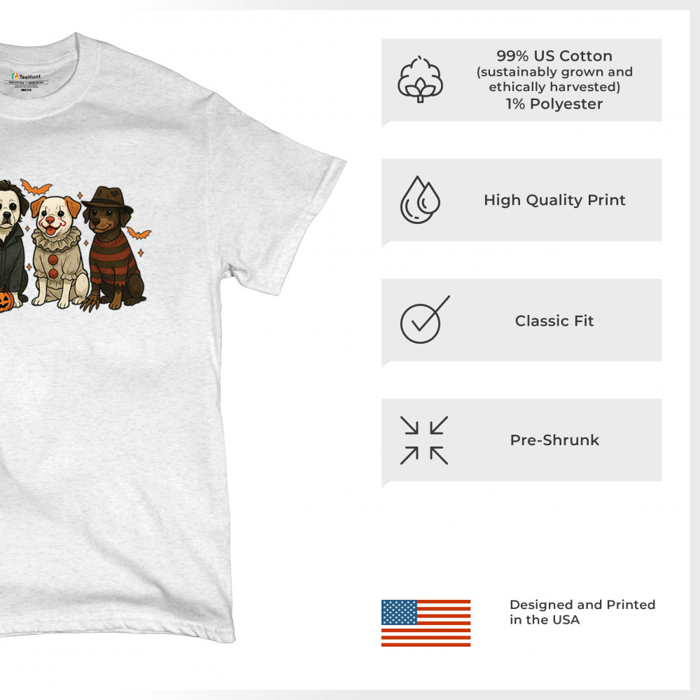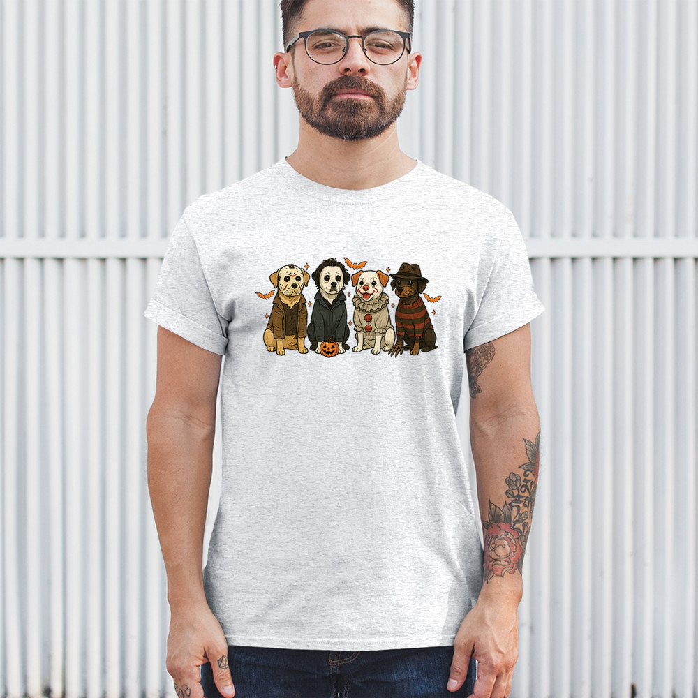 Celebrate Halloween with the Horror Dogs design featuring pups in creepy costumes inspired by spooky icons. A perfect pick for October 31 haunted house visits, autumn nights, or parties full of Halloween vibes. Whether you love dogs, witches, or pumpkin head fun, this festive design makes a playful addition to the spooky season.