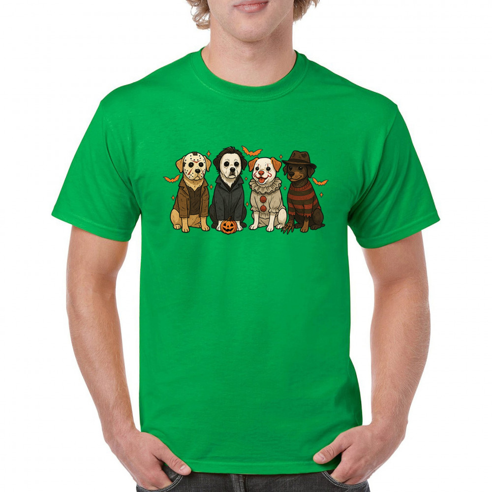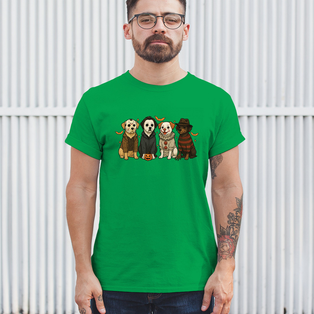 Celebrate Halloween with the Horror Dogs design featuring pups in creepy costumes inspired by spooky icons. A perfect pick for October 31 haunted house visits, autumn nights, or parties full of Halloween vibes. Whether you love dogs, witches, or pumpkin head fun, this festive design makes a playful addition to the spooky season.