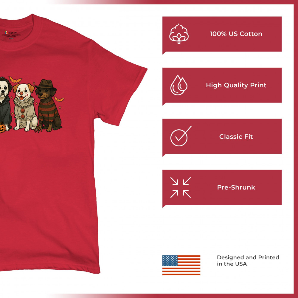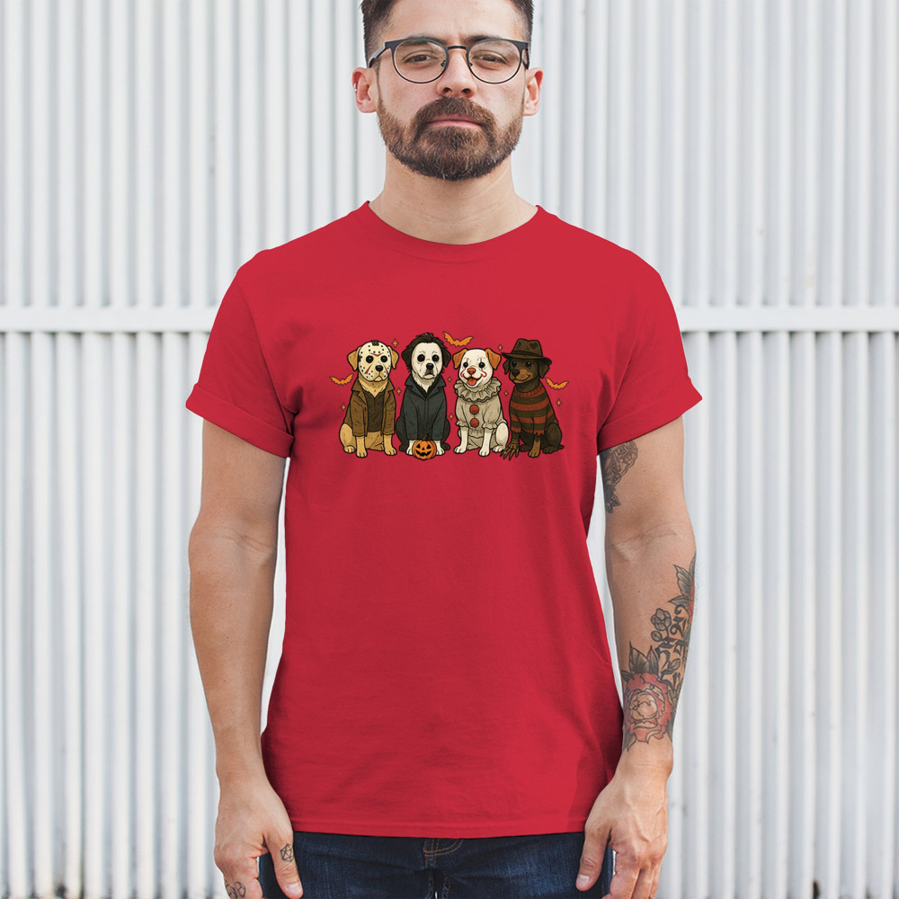 Celebrate Halloween with the Horror Dogs design featuring pups in creepy costumes inspired by spooky icons. A perfect pick for October 31 haunted house visits, autumn nights, or parties full of Halloween vibes. Whether you love dogs, witches, or pumpkin head fun, this festive design makes a playful addition to the spooky season.