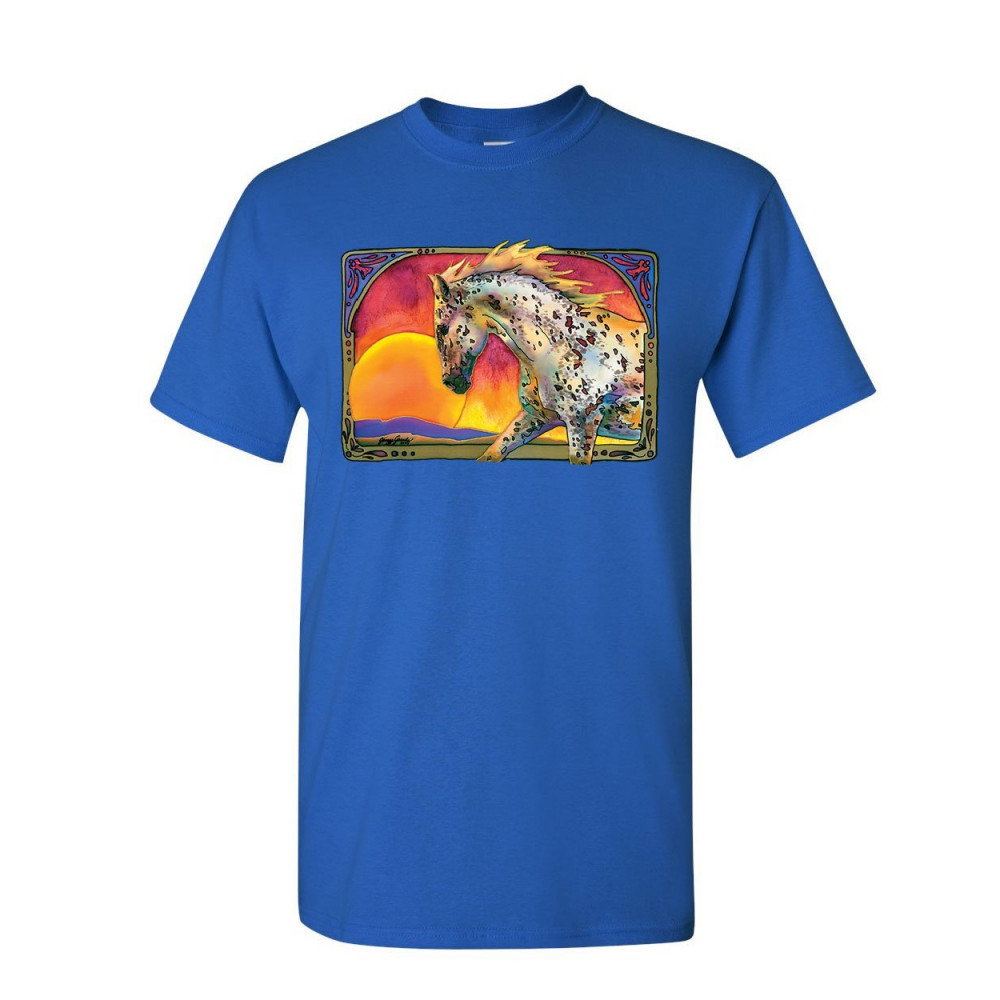 HORSE PRANCING IN SUNSET t-shirt animal wildlife mare stallion mens tee shirt royal blue