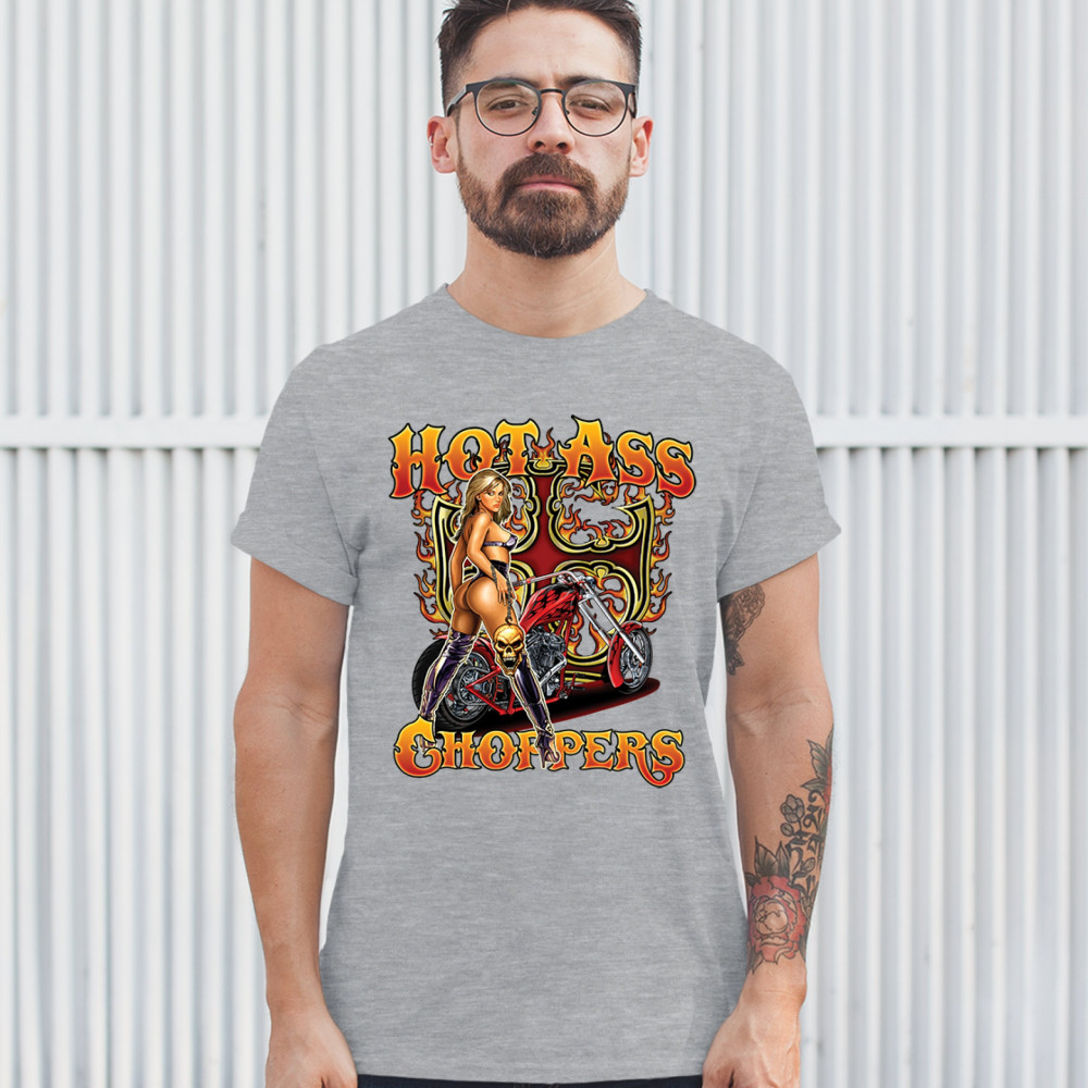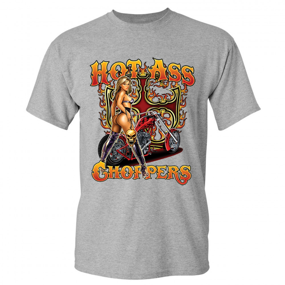 HOT ASS CHOPPERS t-shirt born to be wild route 66 hot chick men's tee gray
