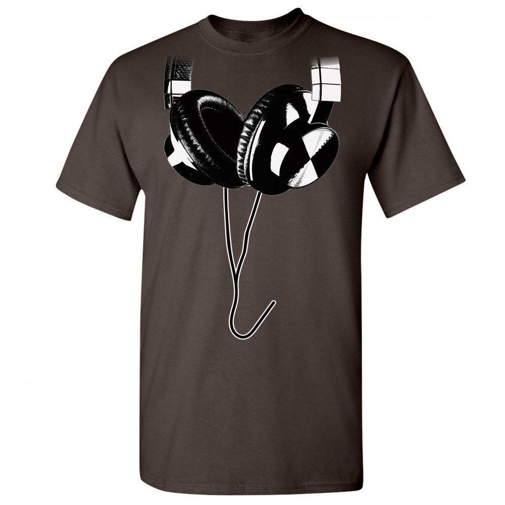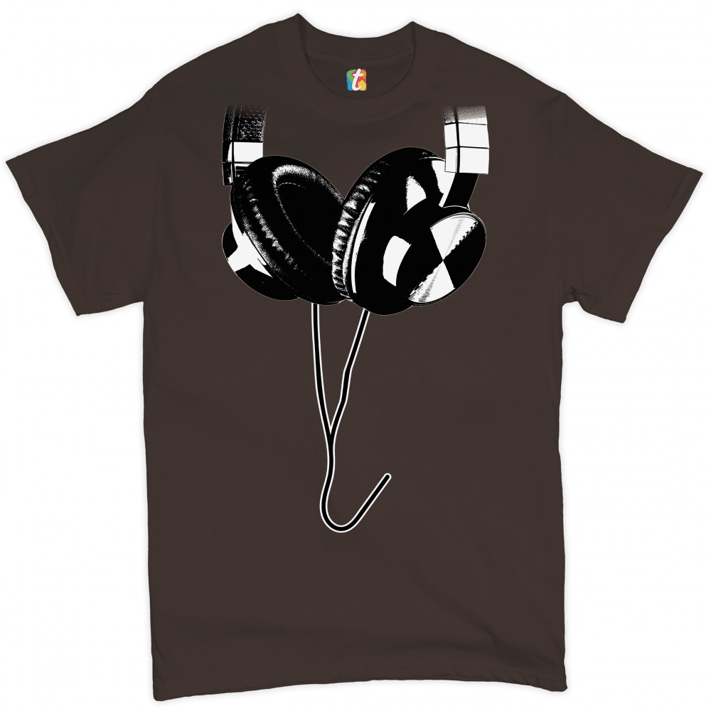 HUGE HANGING HEADPHONES t-shirt dj music men's tee brown