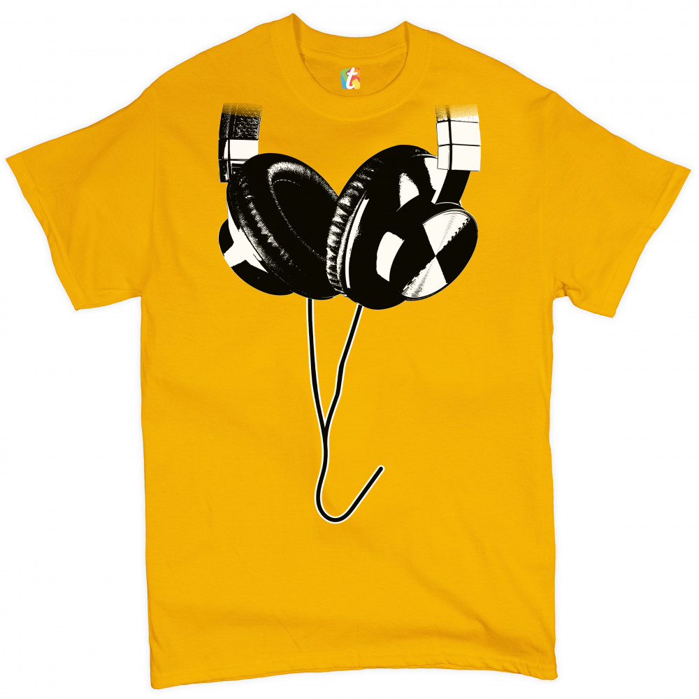 HUGE HANGING HEADPHONES t-shirt dj music men's tee yellow