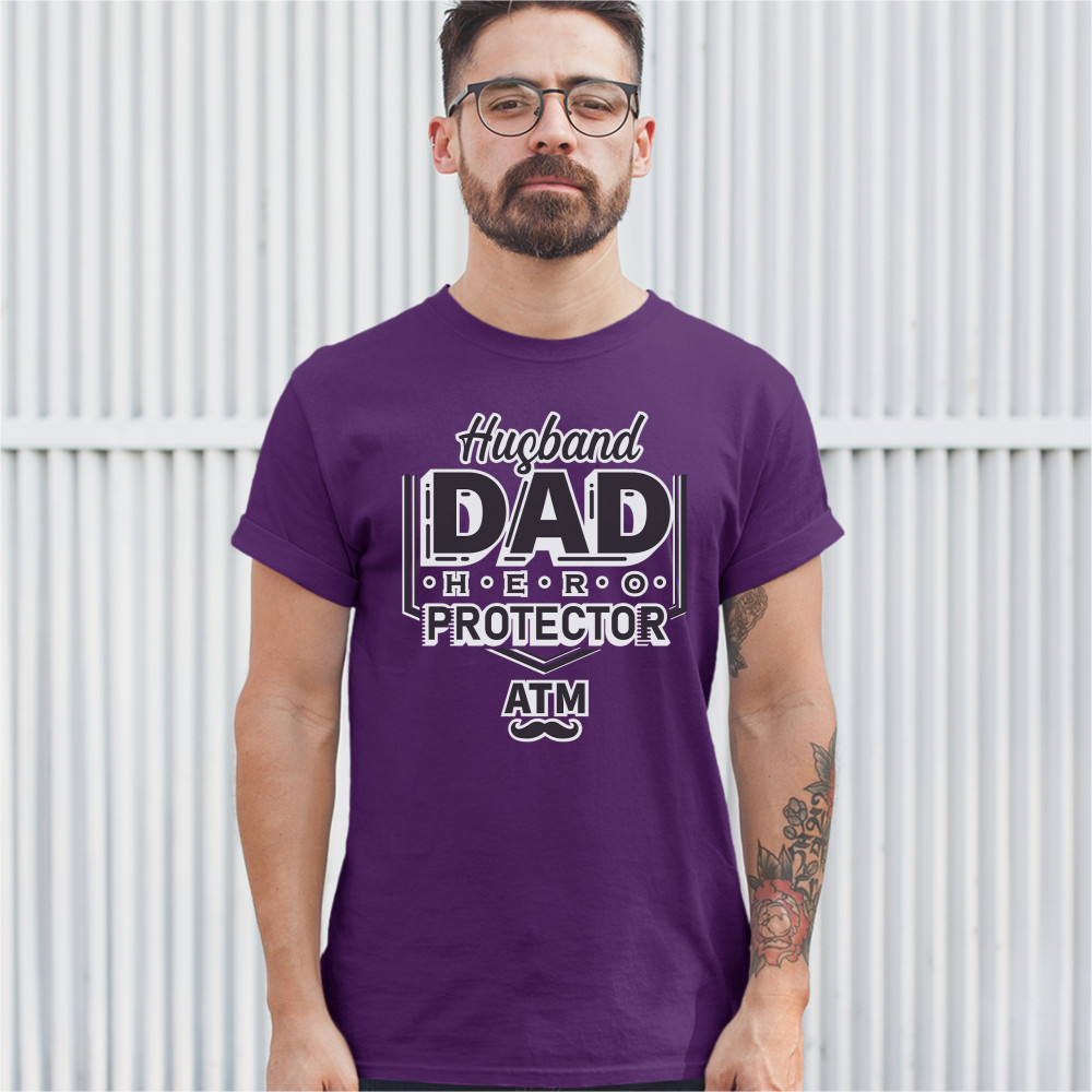 HUSBAND DAD PROTECTOR HERO ATM t-shirt father's day papa daddy men's tee purple