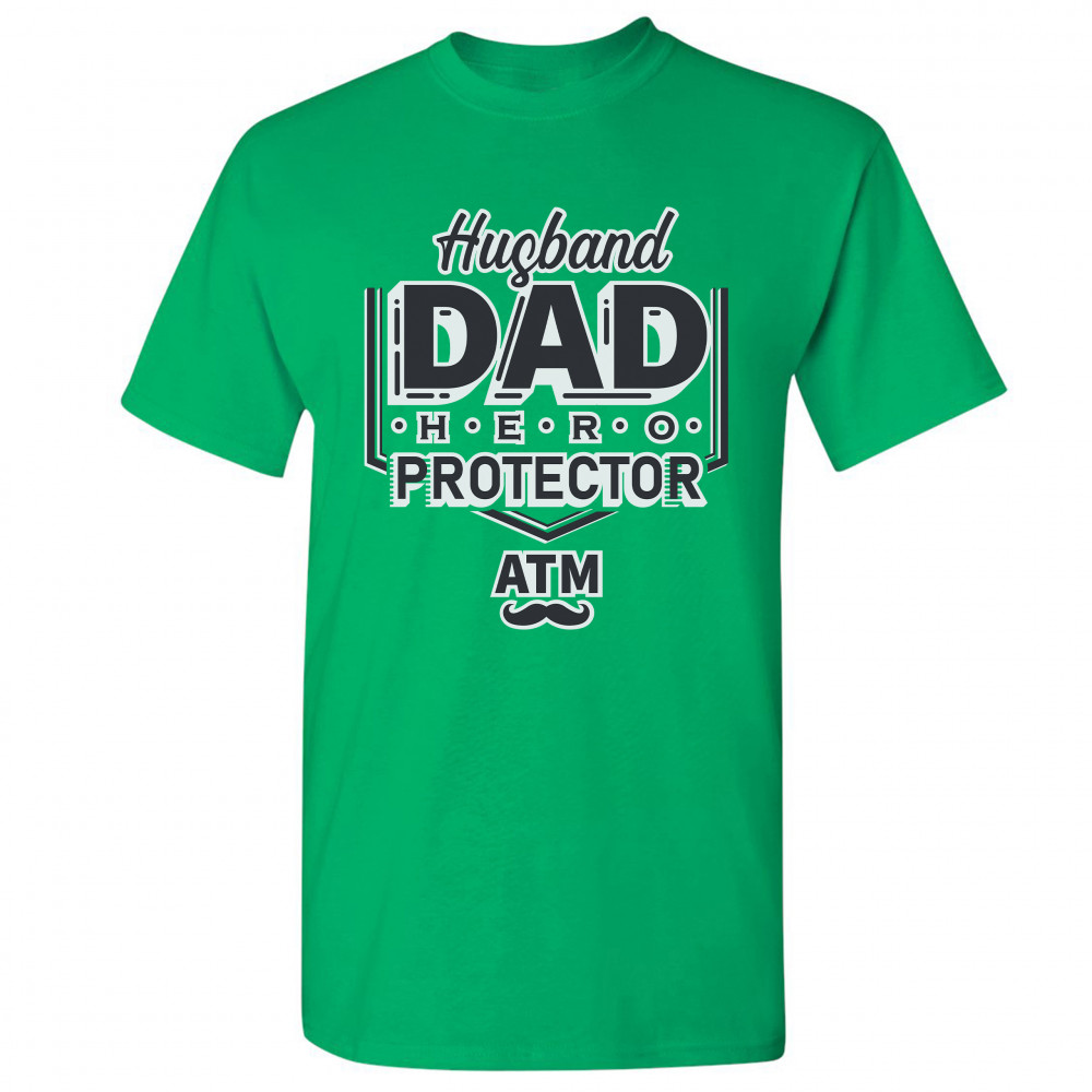 HUSBAND DAD PROTECTOR HERO ATM t-shirt father's day papa daddy men's tee green