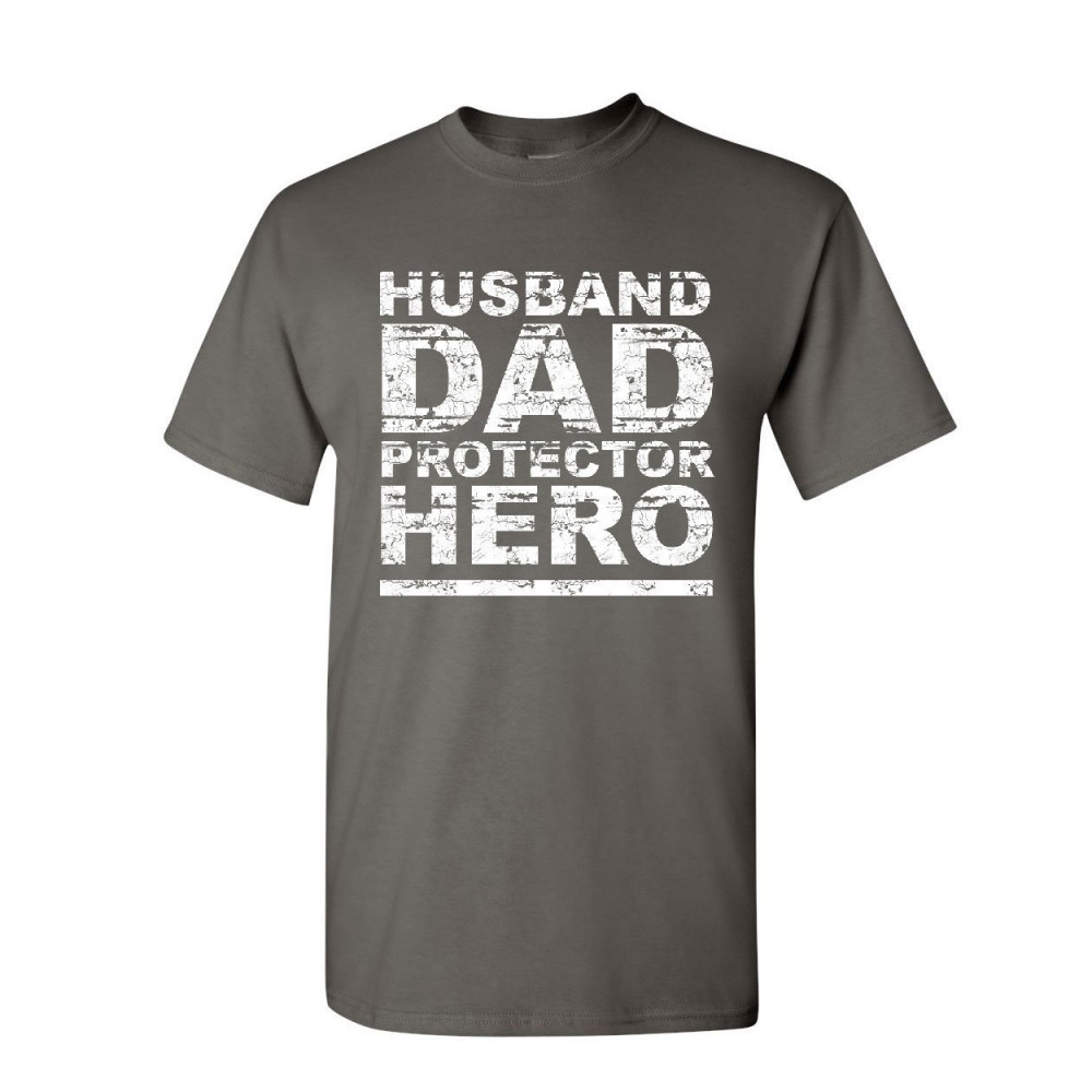 HUSBAND DAD PROTECTOR HERO t-shirt father's day daddy parenthood mens tee shirt charcoal
