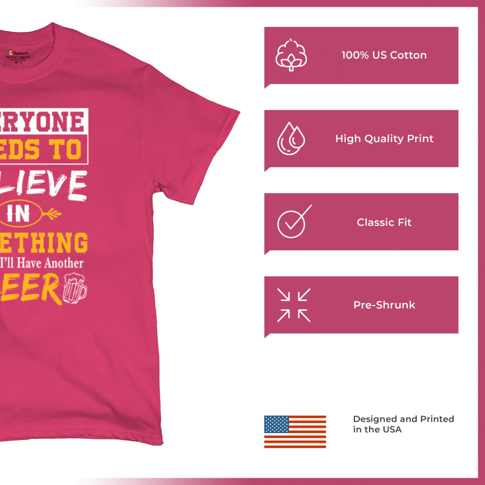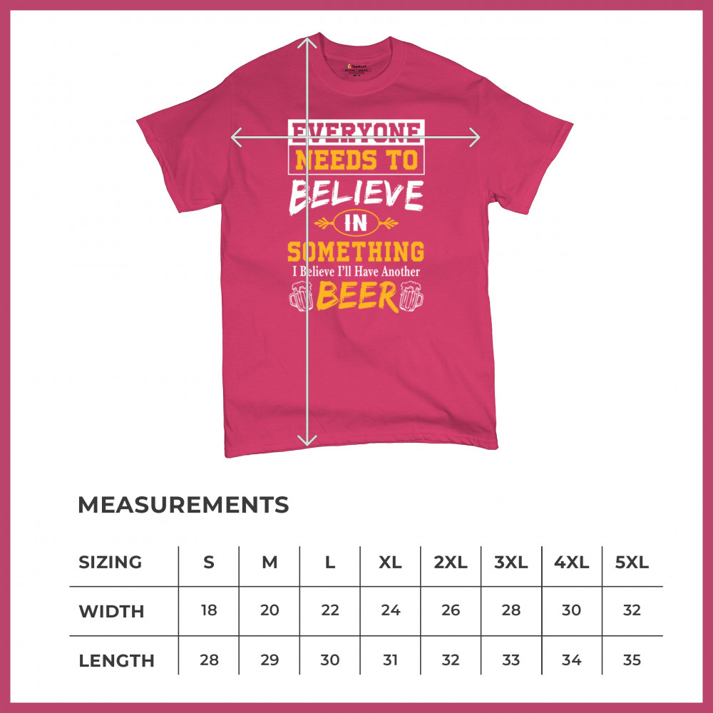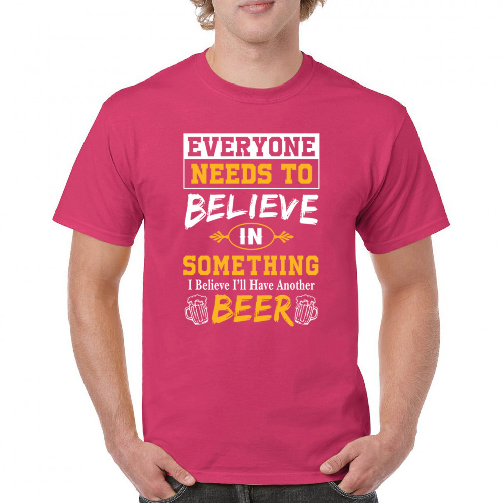Add some humor to your wardrobe with our "Everyone Needs to Believe in Something, I Believe I'll Have Another Beer" design. Featuring a witty slogan and beer-themed graphics, this design is perfect for casual outings, beer festivals, and social gatherings. Ideal for beer lovers and anyone who enjoys a good laugh, it makes a fantastic gift for friends and family. Celebrate your love for beer and good times with this fun and playful design!