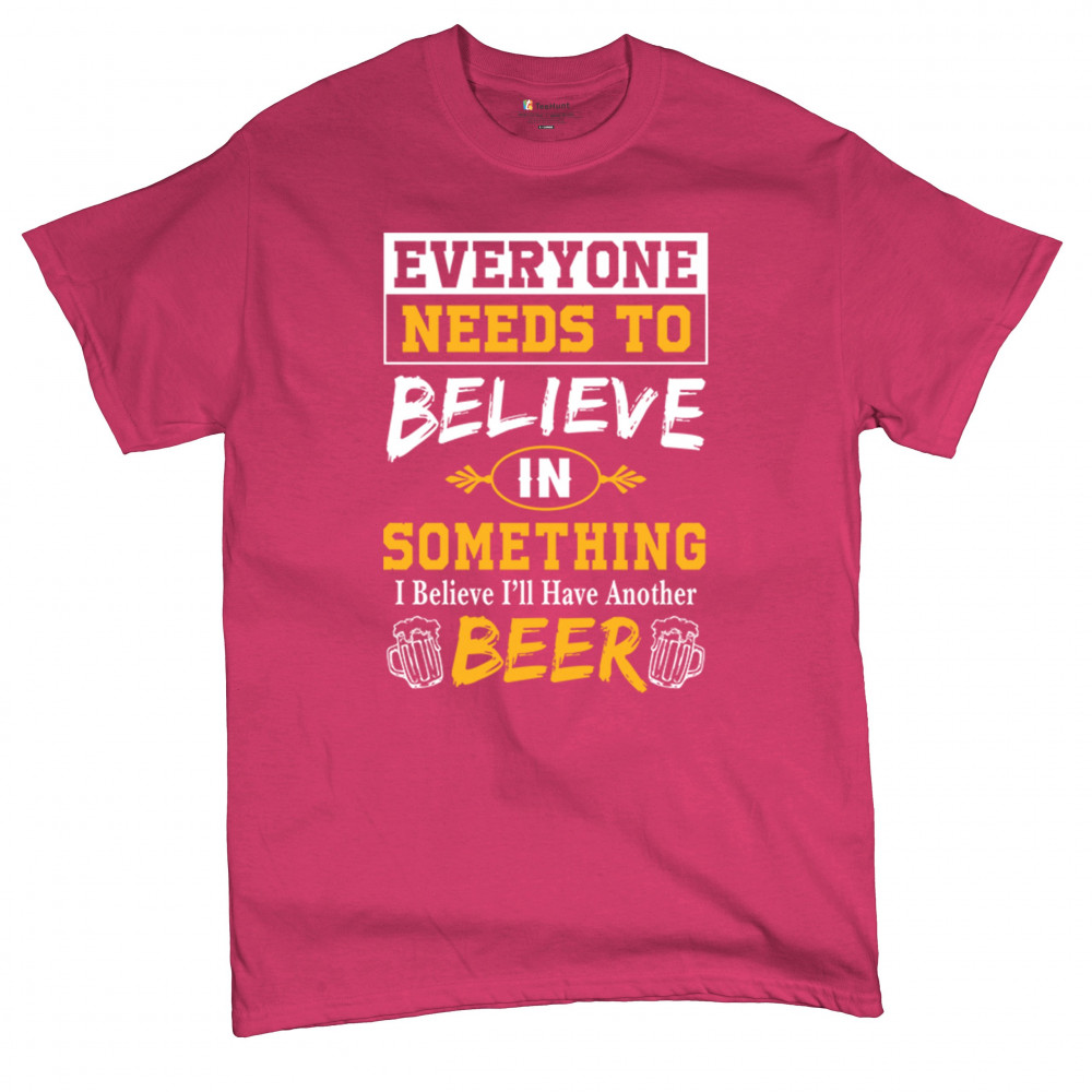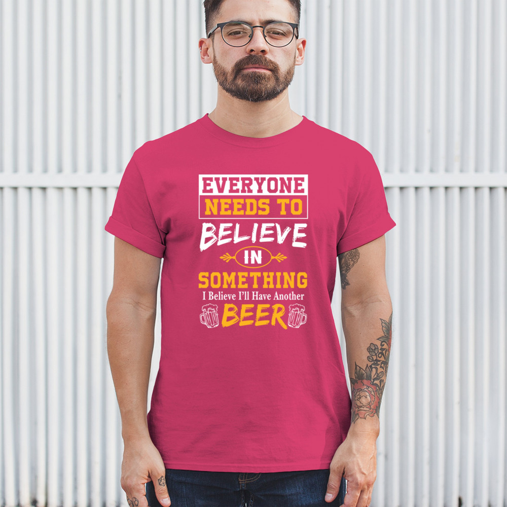 Celebrate your love for beer with the witty "Everyone Needs to Believe in Something, I Believe I'll Have Another Beer" design. Perfect for beer lovers and casual outings.