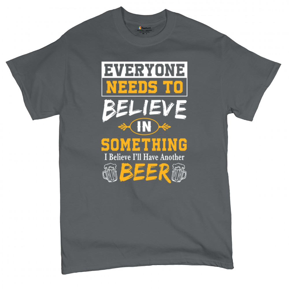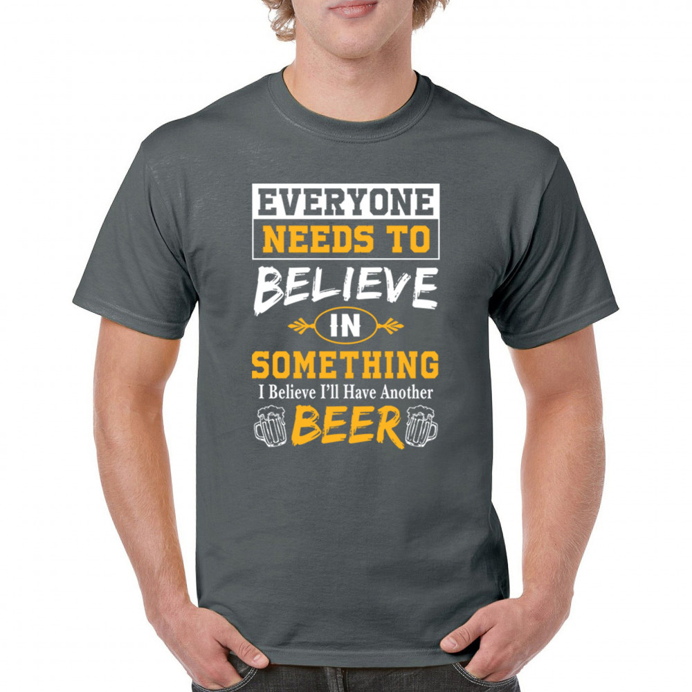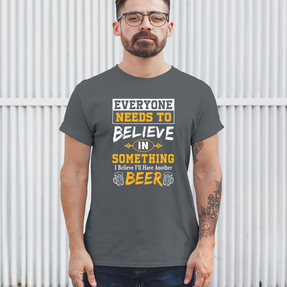 Celebrate your love for beer with the witty "Everyone Needs to Believe in Something, I Believe I'll Have Another Beer" design. Perfect for beer lovers and casual outings.