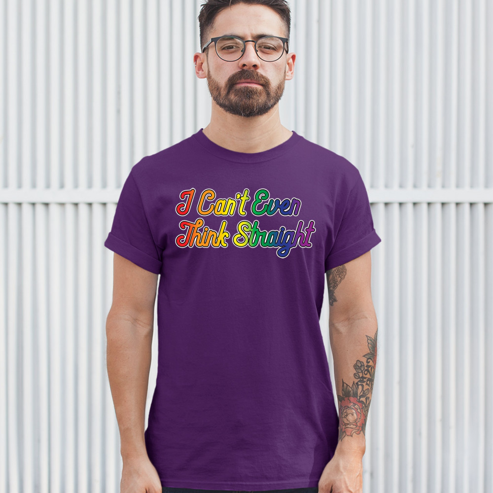 I CAN'T EVEN THINK STRAIGHT t-shirt lgbt rainbow gay pride funny men's tee purple