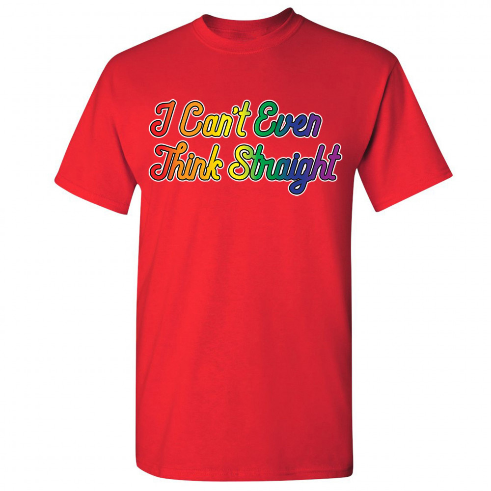 I CAN'T EVEN THINK STRAIGHT t-shirt lgbt rainbow gay pride funny men's tee red