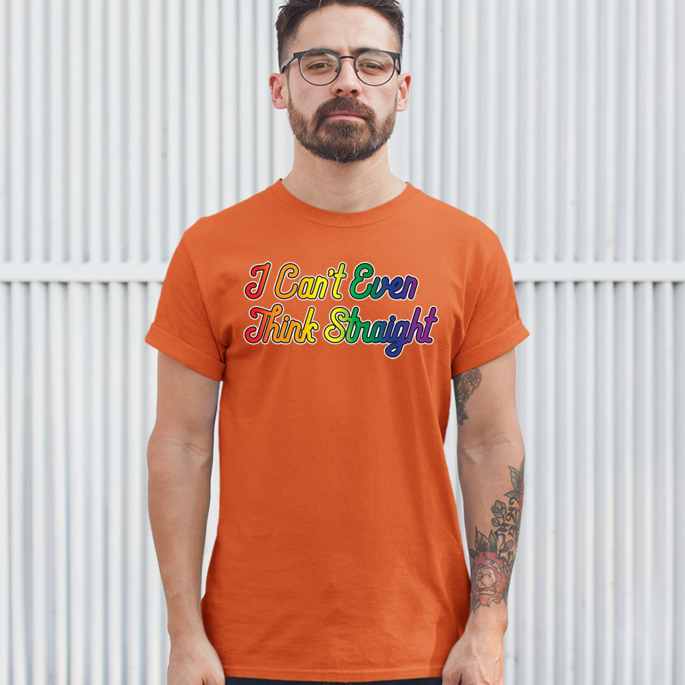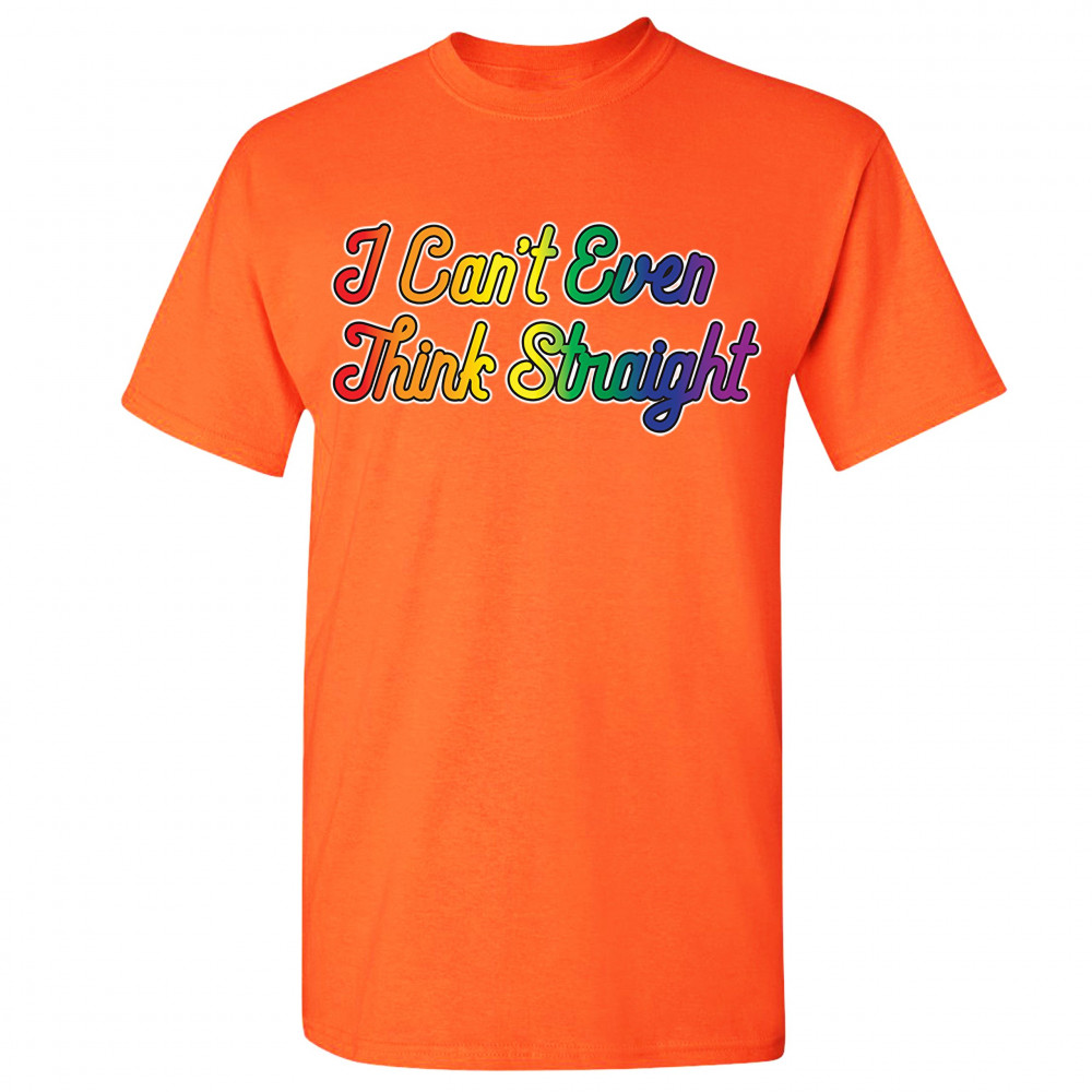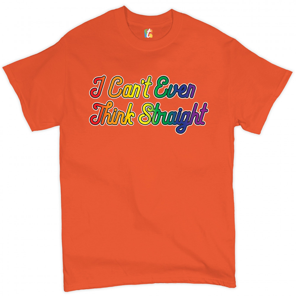 I CAN'T EVEN THINK STRAIGHT t-shirt lgbt rainbow gay pride funny men's tee orange