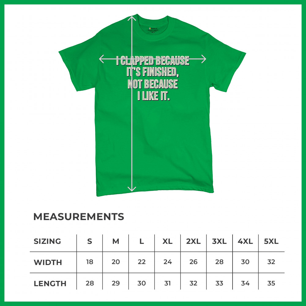 I CLAPPED BECAUSE IT'S FINISHED NOT BECAUSE I LIKE IT t-shirt funny men's tee green