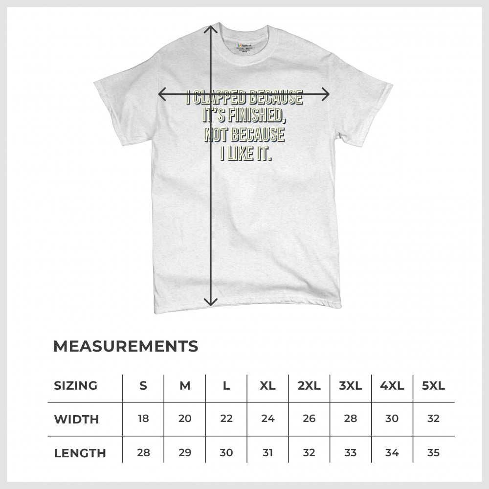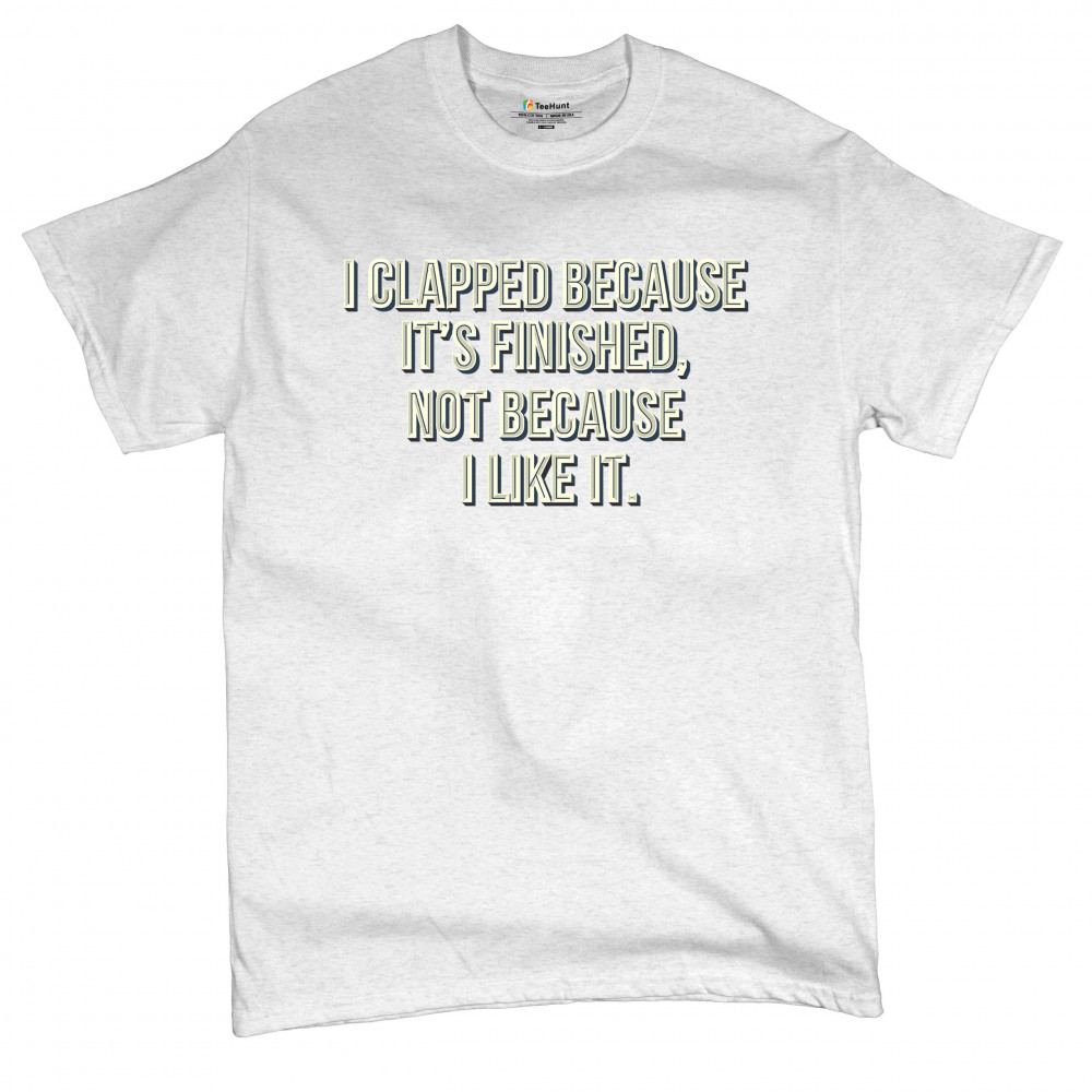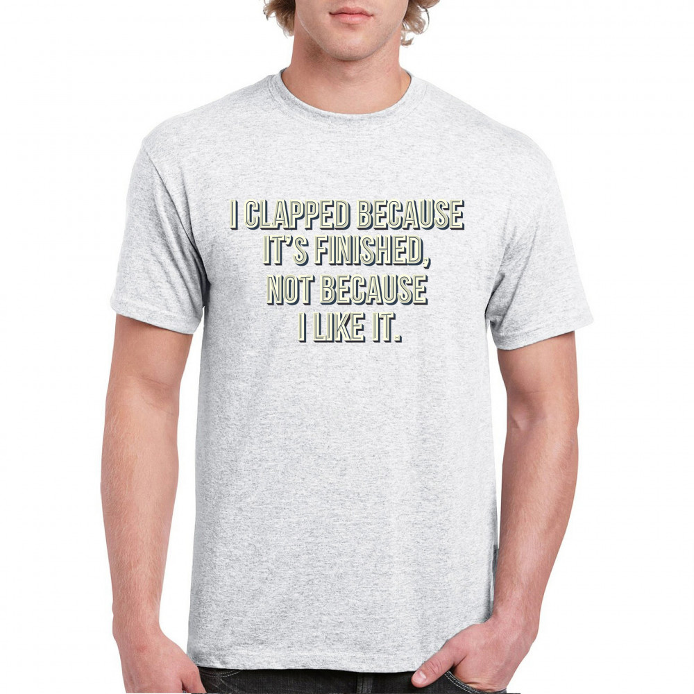 I CLAPPED BECAUSE IT'S FINISHED NOT BECAUSE I LIKE IT t-shirt funny men's tee ash gray