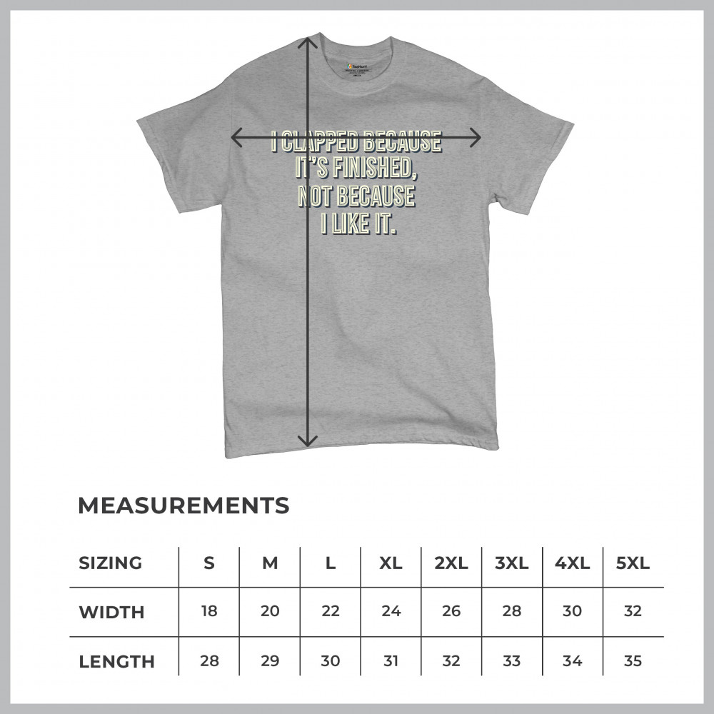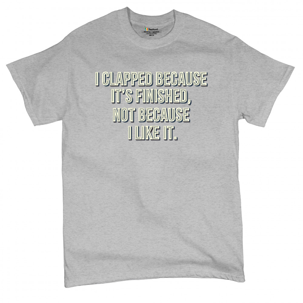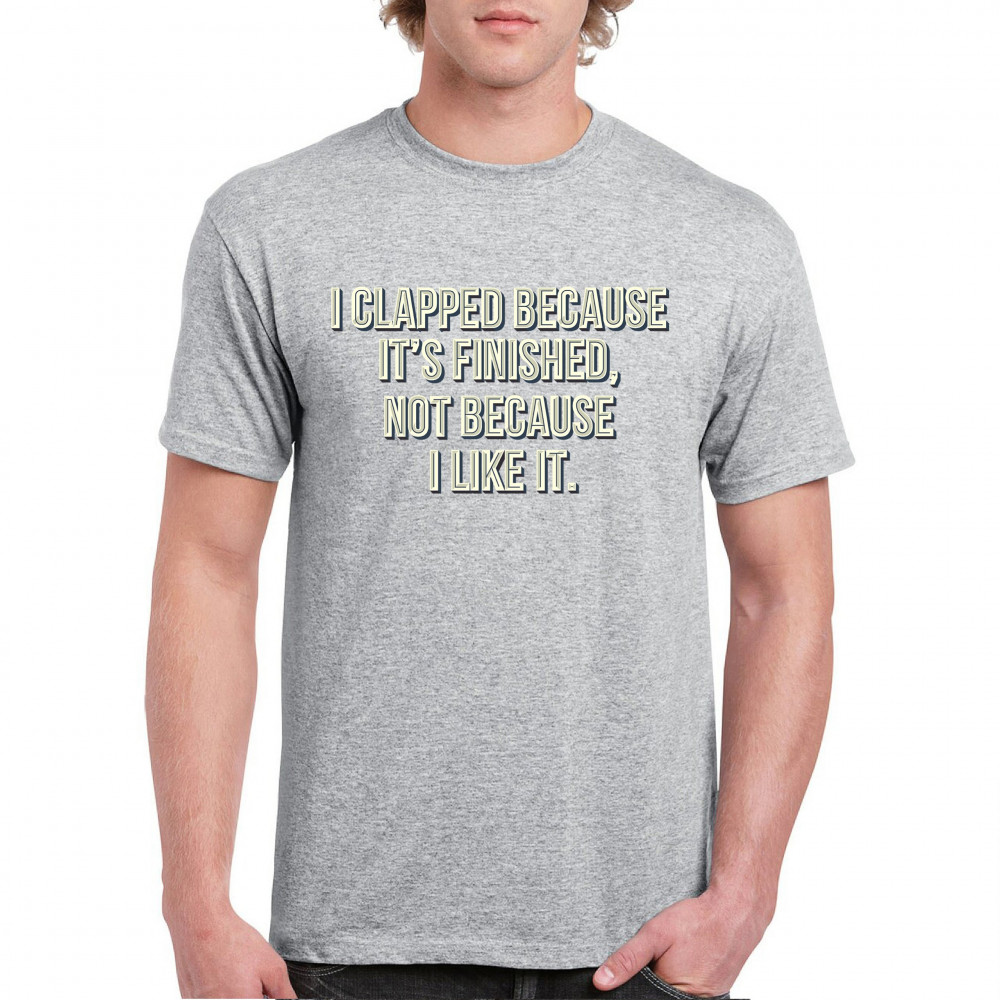 I CLAPPED BECAUSE IT'S FINISHED NOT BECAUSE I LIKE IT t-shirt funny men's tee gray
