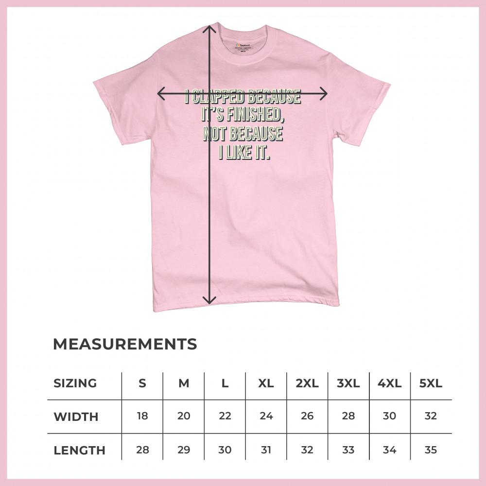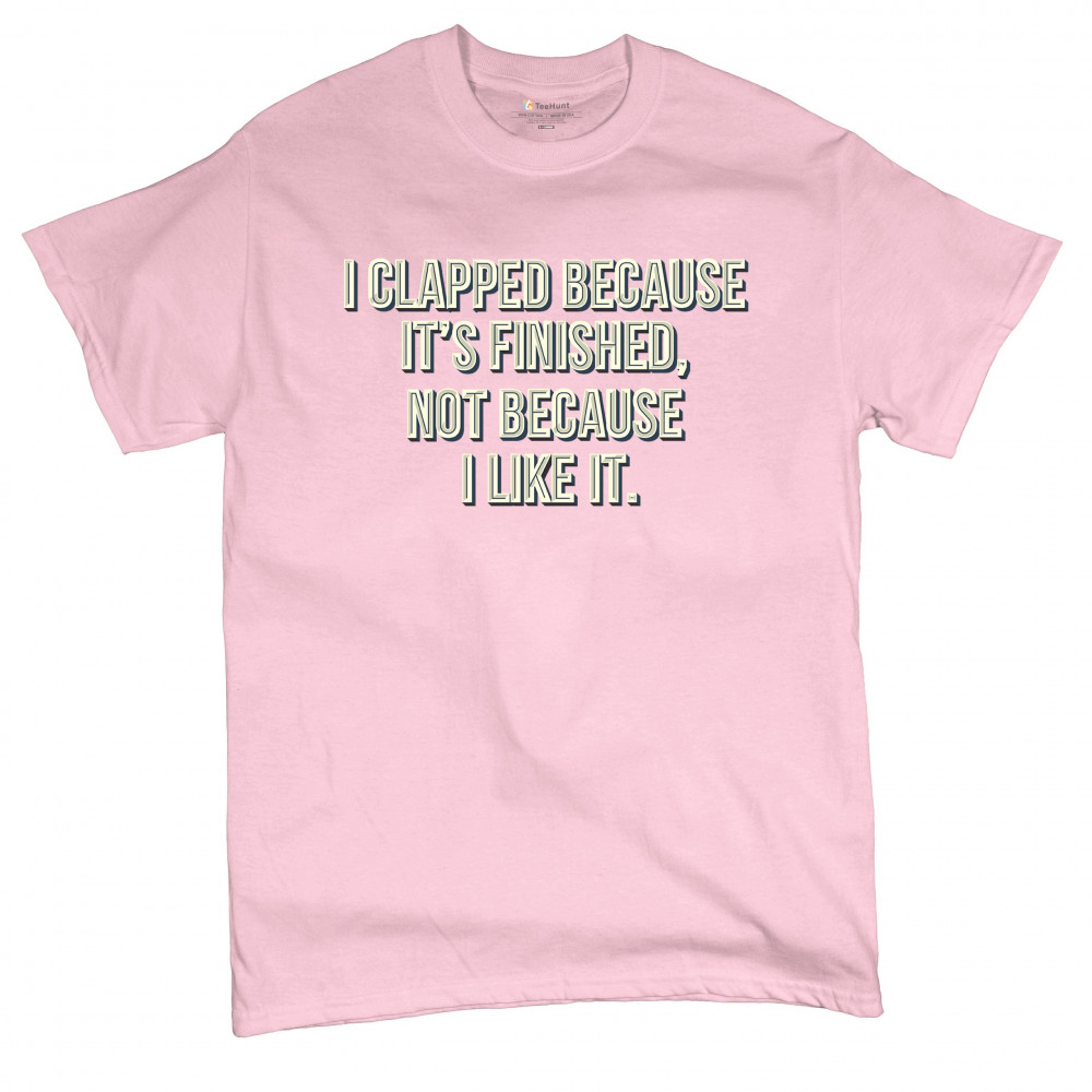 I CLAPPED BECAUSE IT'S FINISHED NOT BECAUSE I LIKE IT t-shirt funny men's tee light pink