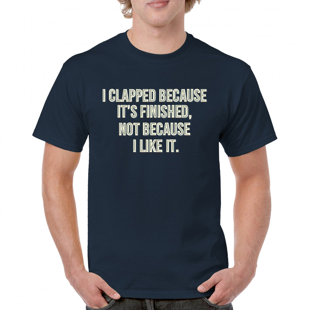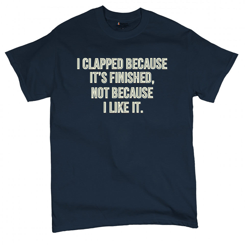 I CLAPPED BECAUSE IT'S FINISHED NOT BECAUSE I LIKE IT t-shirt funny men's tee navy blue