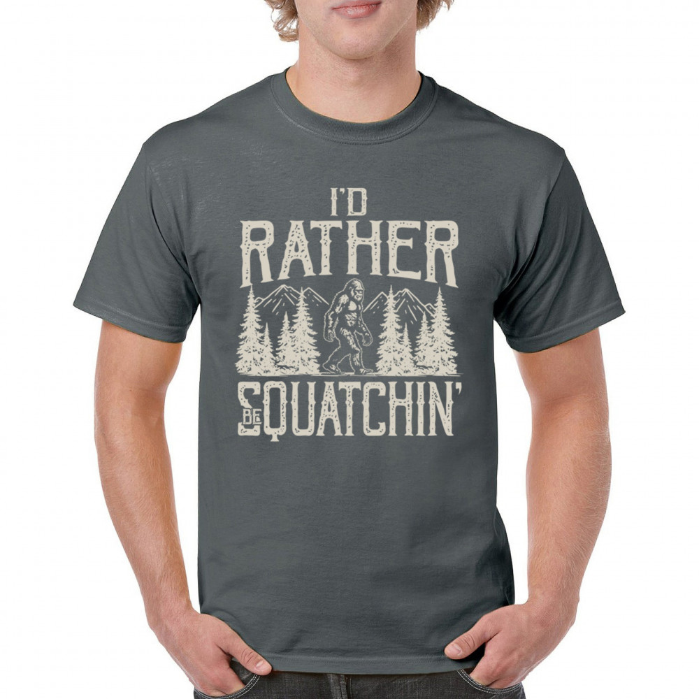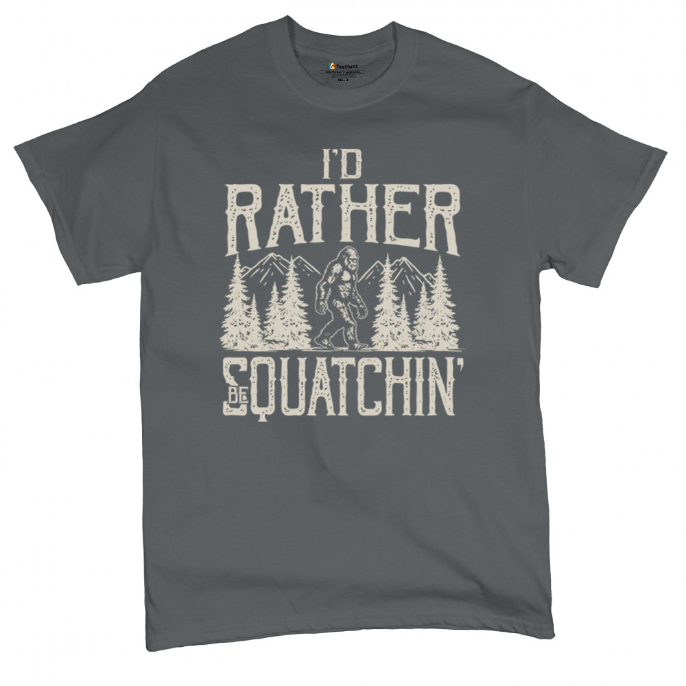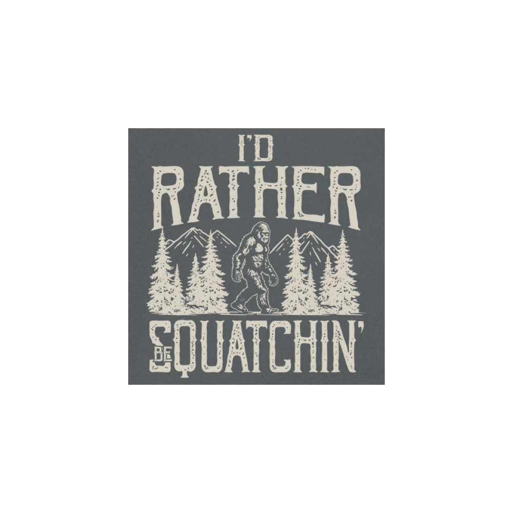 "I’d Rather Be Squatchin’" – A bold design for Bigfoot fans and outdoor adventurers, featuring Sasquatch in a wilderness setting. Perfect for hikers and cryptid enthusiasts!