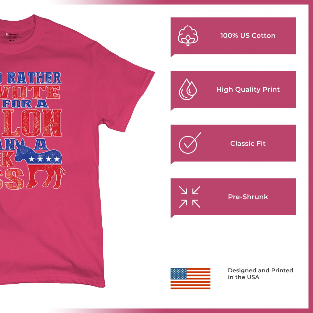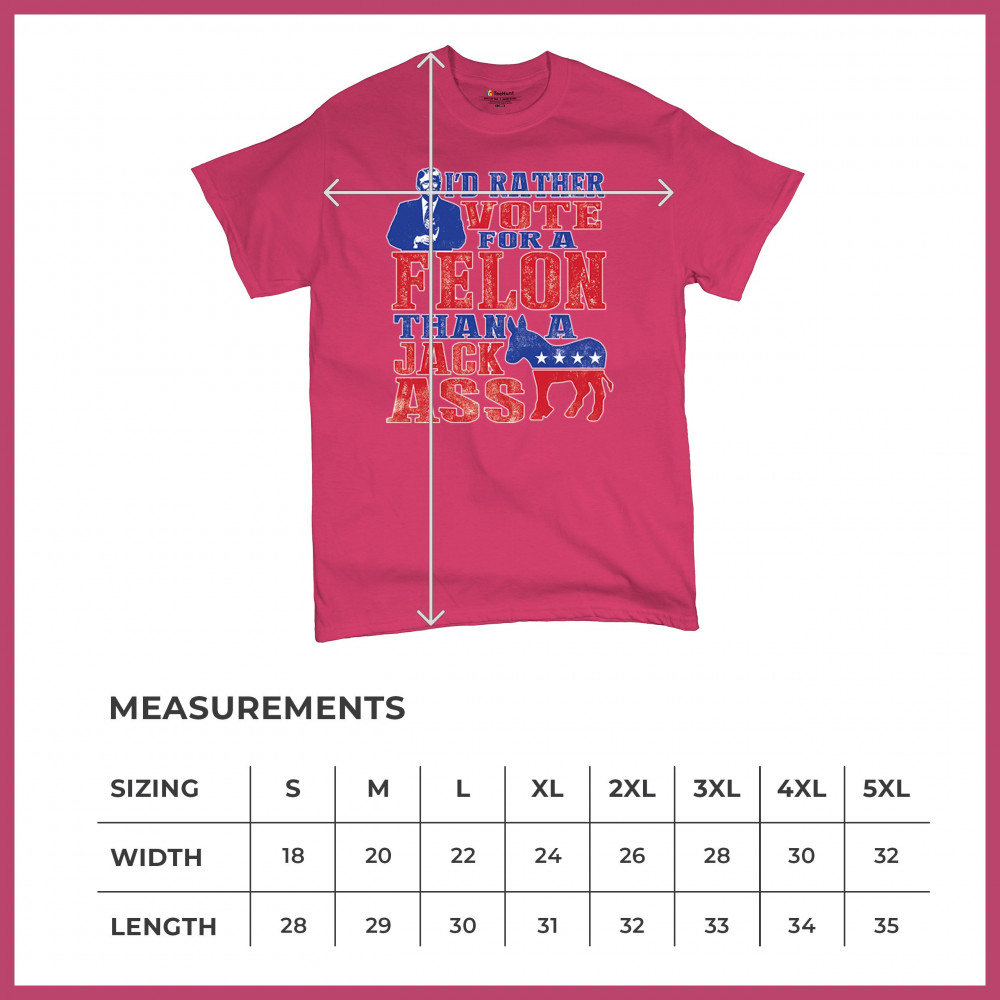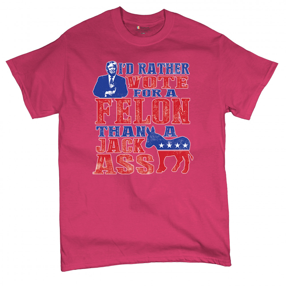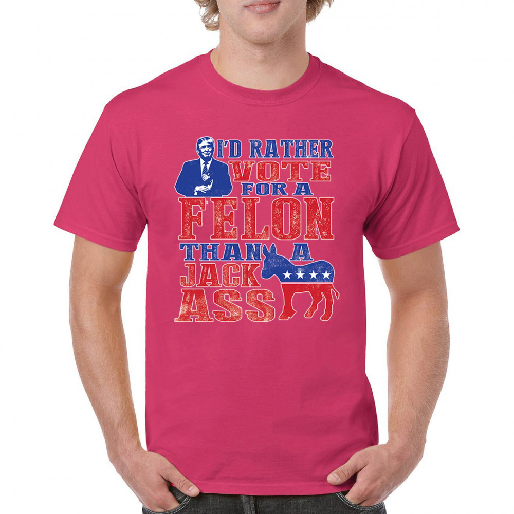 Boldly express your support with the "I'd Rather Vote For A Felon Than A Jackass" design. Perfect for rallies, it showcases loyalty to Trump and JD Vance.
