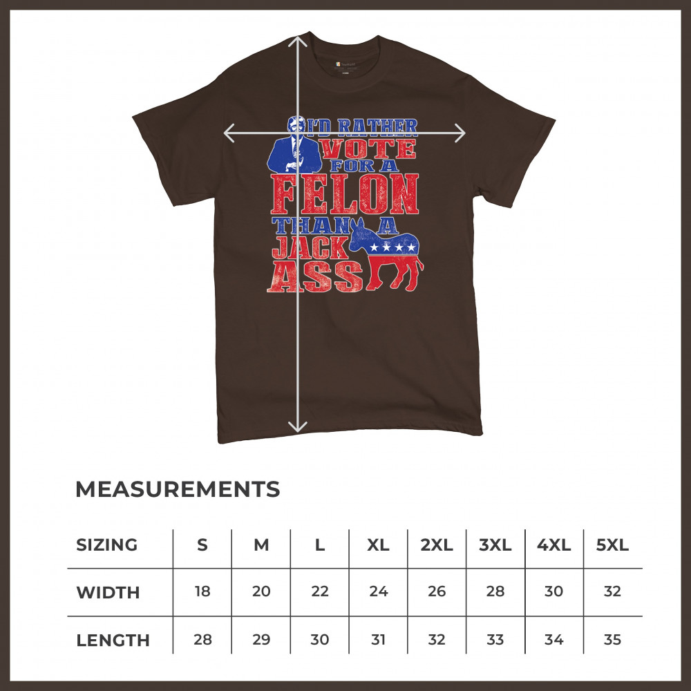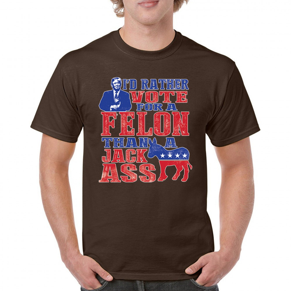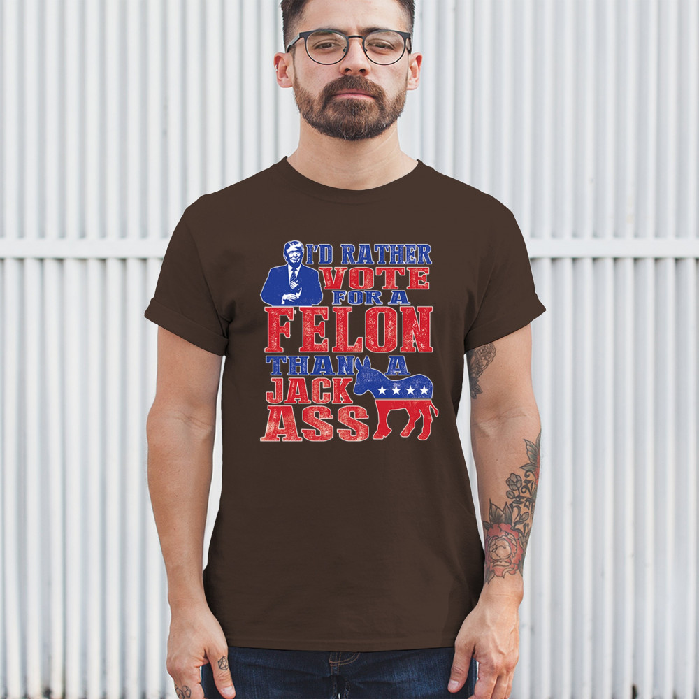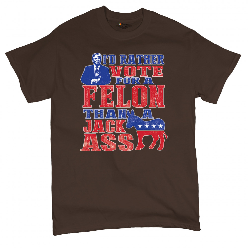 Boldly express your support with the "I'd Rather Vote For A Felon Than A Jackass" design. Perfect for rallies, it showcases loyalty to Trump and JD Vance.