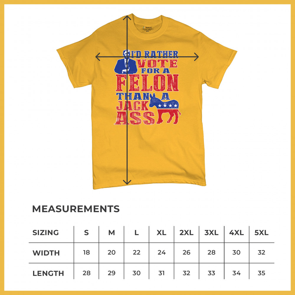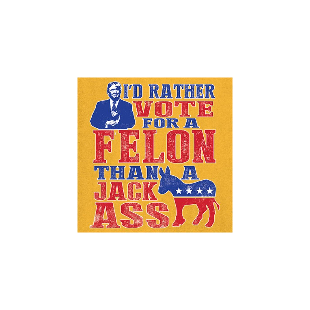 Boldly express your support with the "I'd Rather Vote For A Felon Than A Jackass" design. Perfect for rallies, it showcases loyalty to Trump and JD Vance.