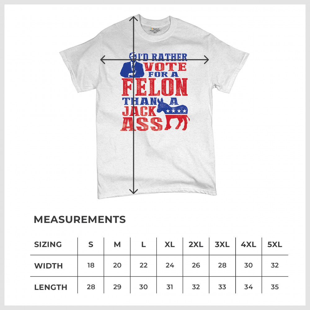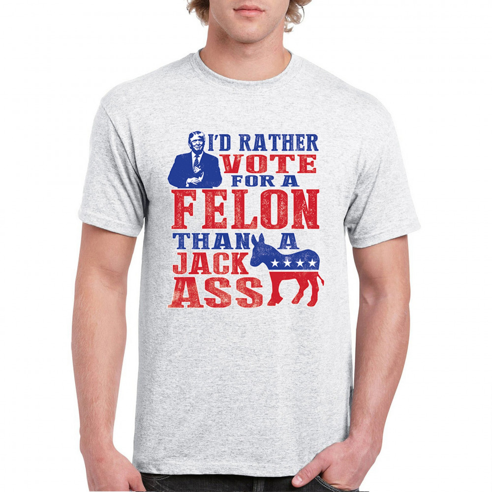 Boldly express your support with the "I'd Rather Vote For A Felon Than A Jackass" design. Perfect for rallies, it showcases loyalty to Trump and JD Vance.