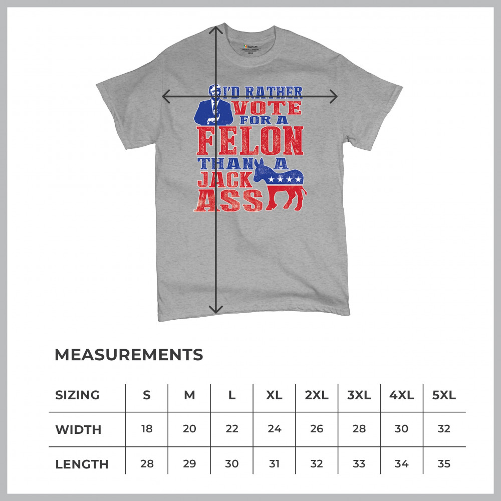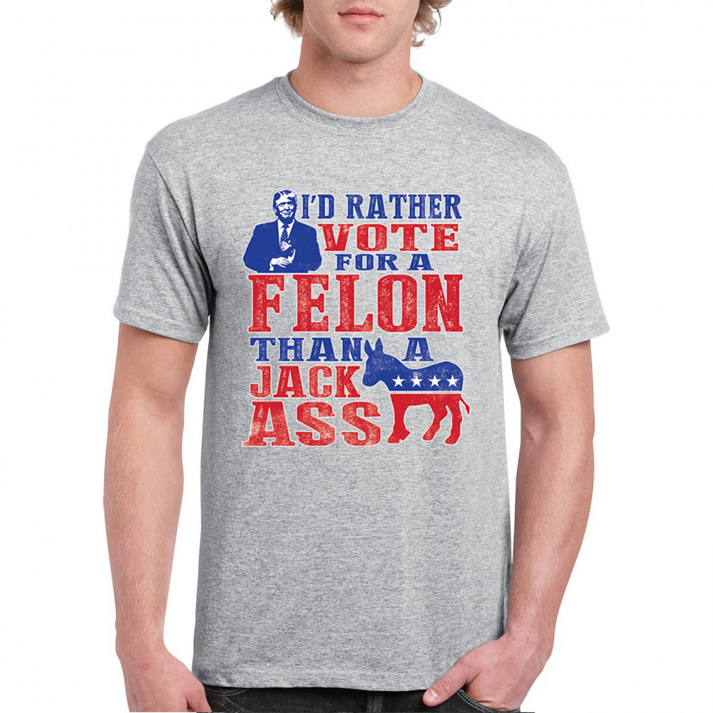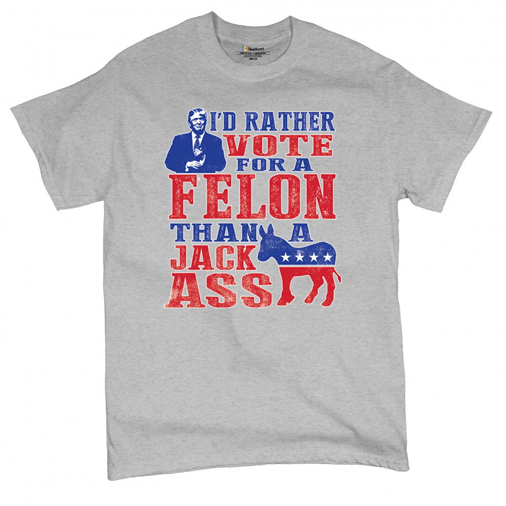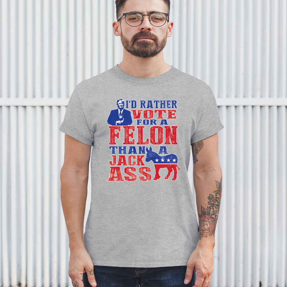 Boldly express your support with the "I'd Rather Vote For A Felon Than A Jackass" design. Perfect for rallies, it showcases loyalty to Trump and JD Vance.