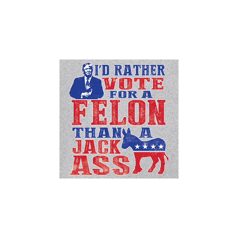 Make a statement with this design, perfect for any Trump supporter. The bold phrase, "I'd Rather Vote For A Felon Than A Jackass," showcases loyalty to Trump and JD Vance, contrasted against the opposition. Ideal for rallies and everyday wear, it highlights patriotic colors and a clear conservative stance. Show your commitment to the values of America First and resist leftist policies. This design is a declaration of your beliefs and a call to Make America Great Again.