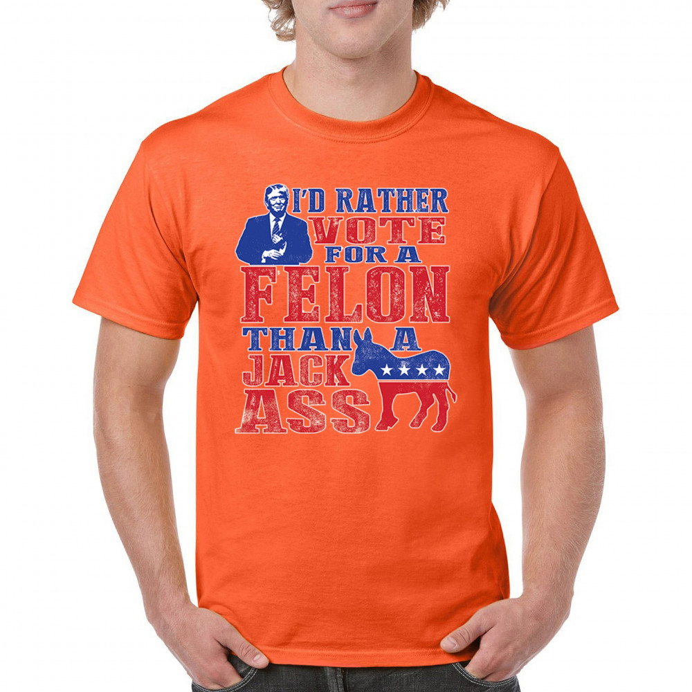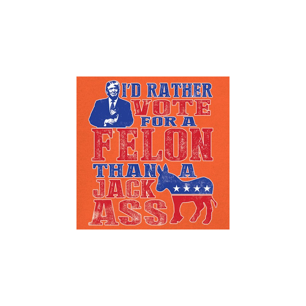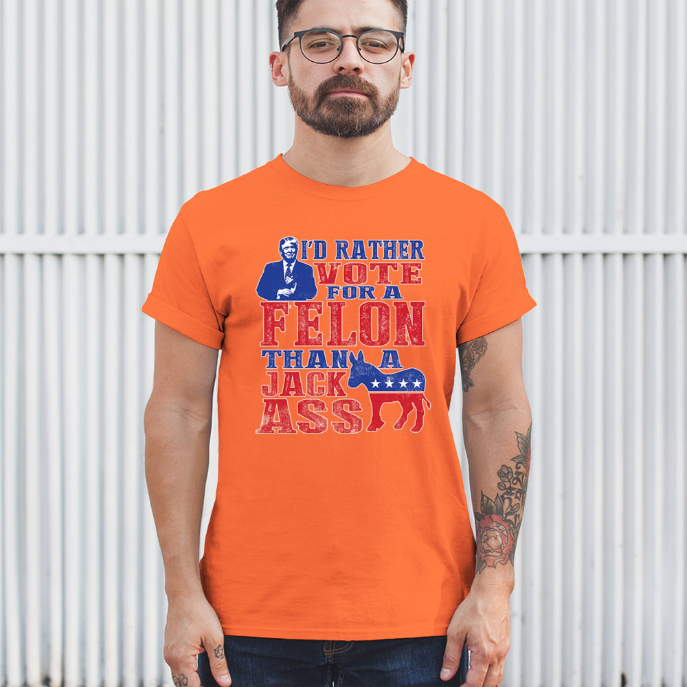 Boldly express your support with the "I'd Rather Vote For A Felon Than A Jackass" design. Perfect for rallies, it showcases loyalty to Trump and JD Vance.