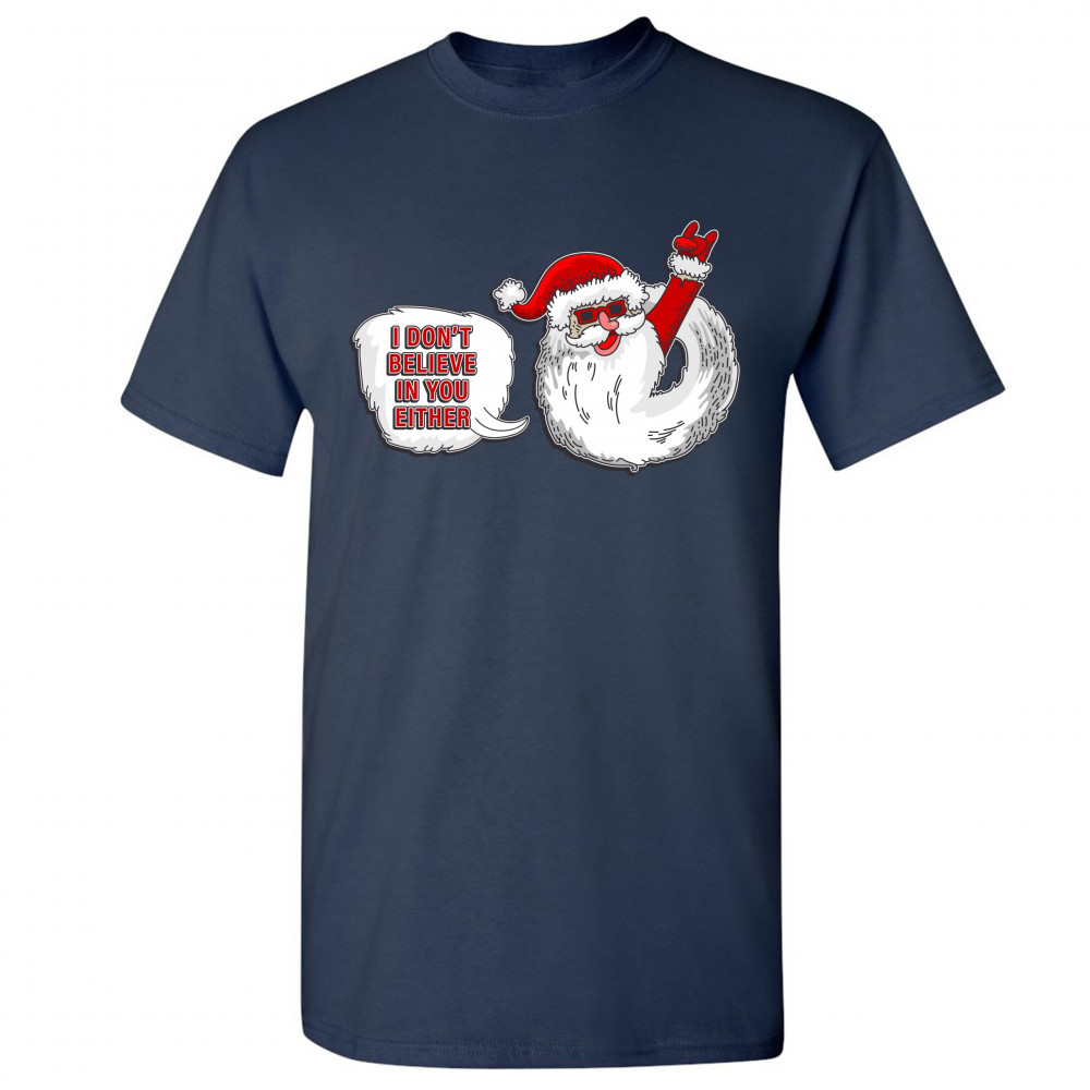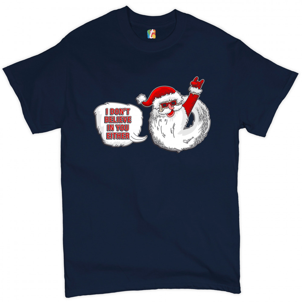 I DON'T BELIEVE IN YOU EITHER t-shirt santa claus merry christmas men's tee navy blue