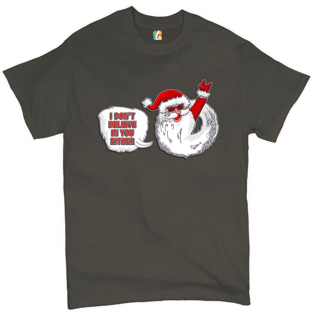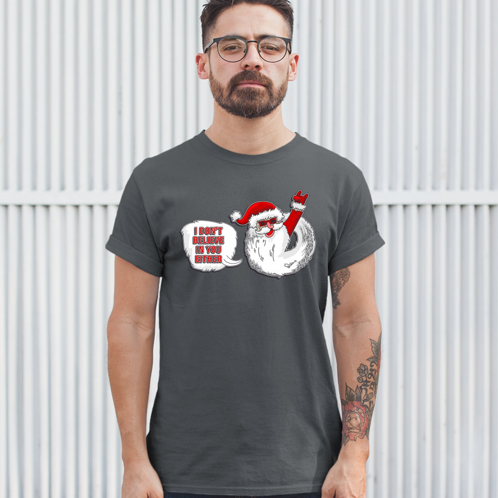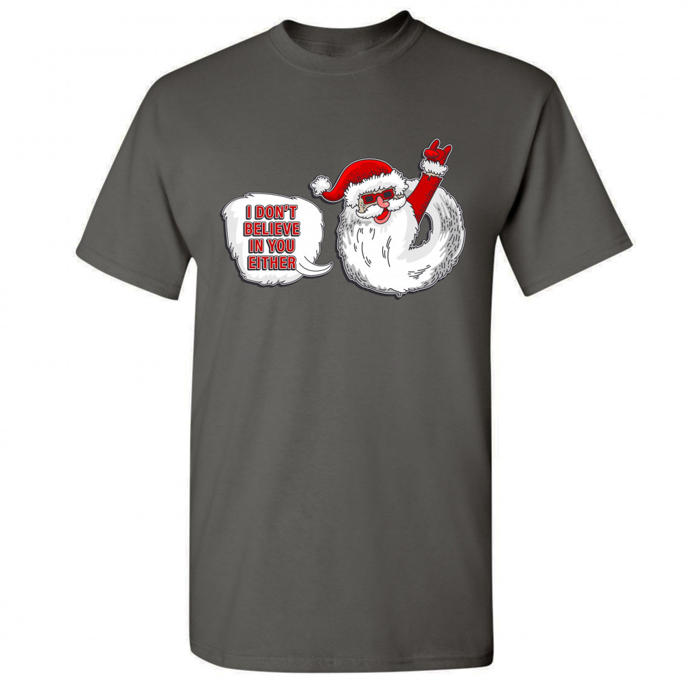 I DON'T BELIEVE IN YOU EITHER t-shirt santa claus merry christmas men's tee charcoal