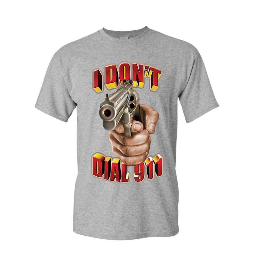 I DON'T DIAL 911 t-shirt defend 2nd amendment pro guns revolver mens tee shirt sport gray