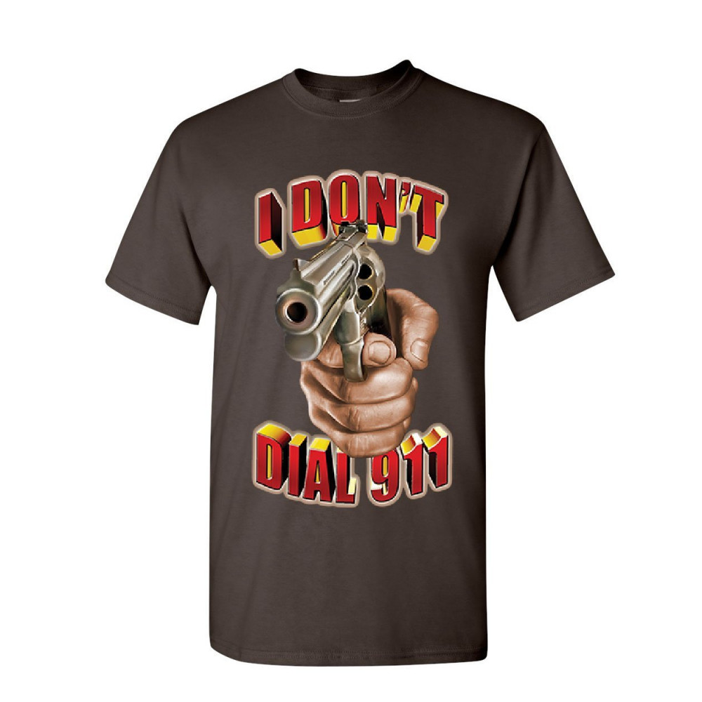 I DON'T DIAL 911 t-shirt defend 2nd amendment pro guns revolver mens tee shirt brown