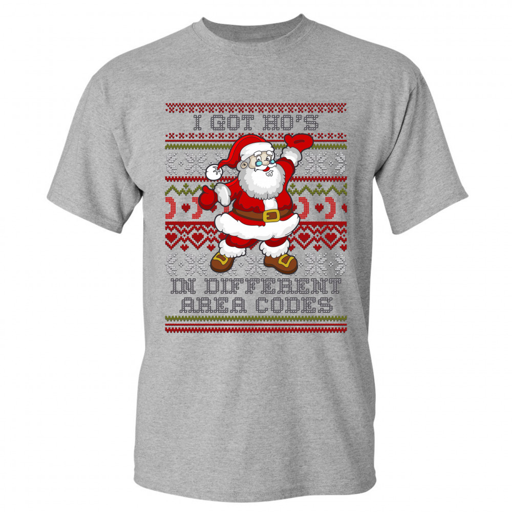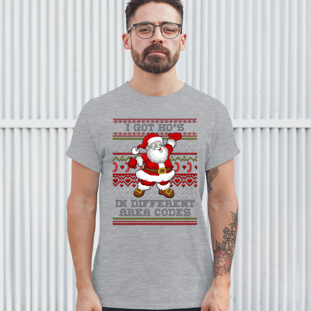 I GOT HO'S IN DIFFERENT AREA CODES t-shirt santa claus ugly sweater men's tee gray