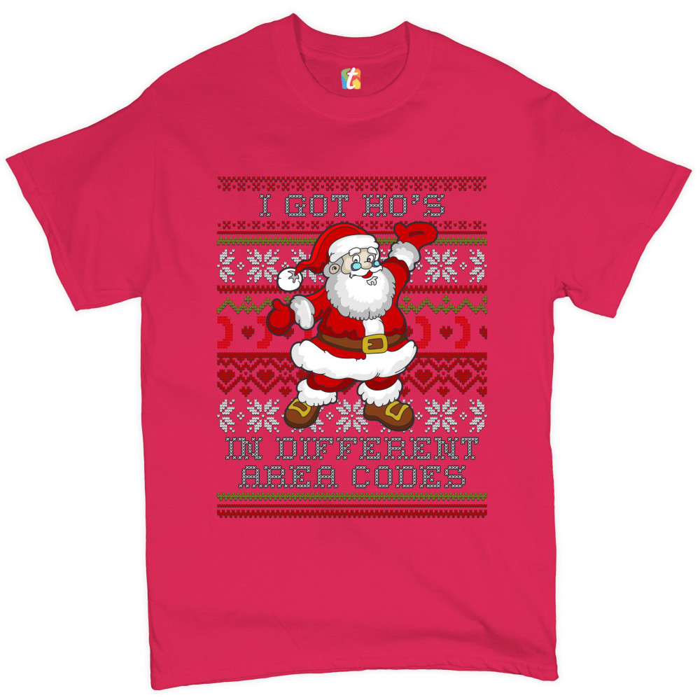 I GOT HO'S IN DIFFERENT AREA CODES t-shirt santa claus ugly sweater men's tee hot pink