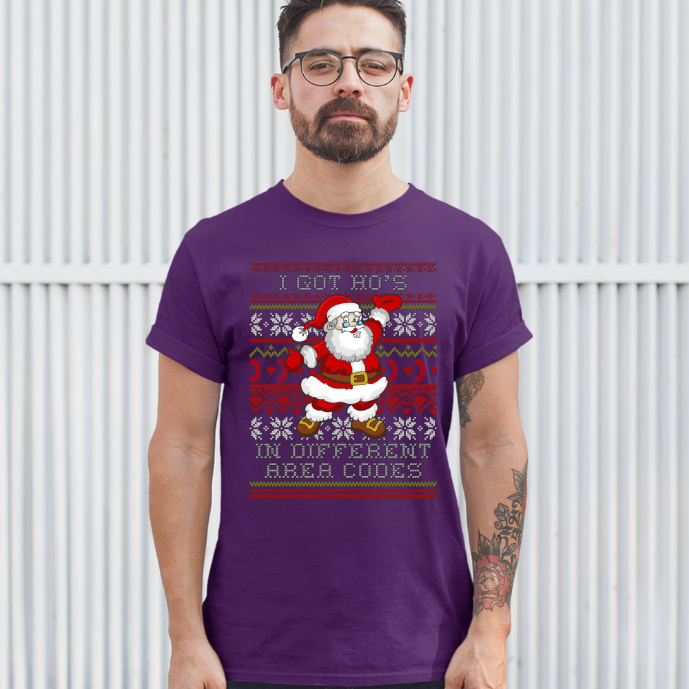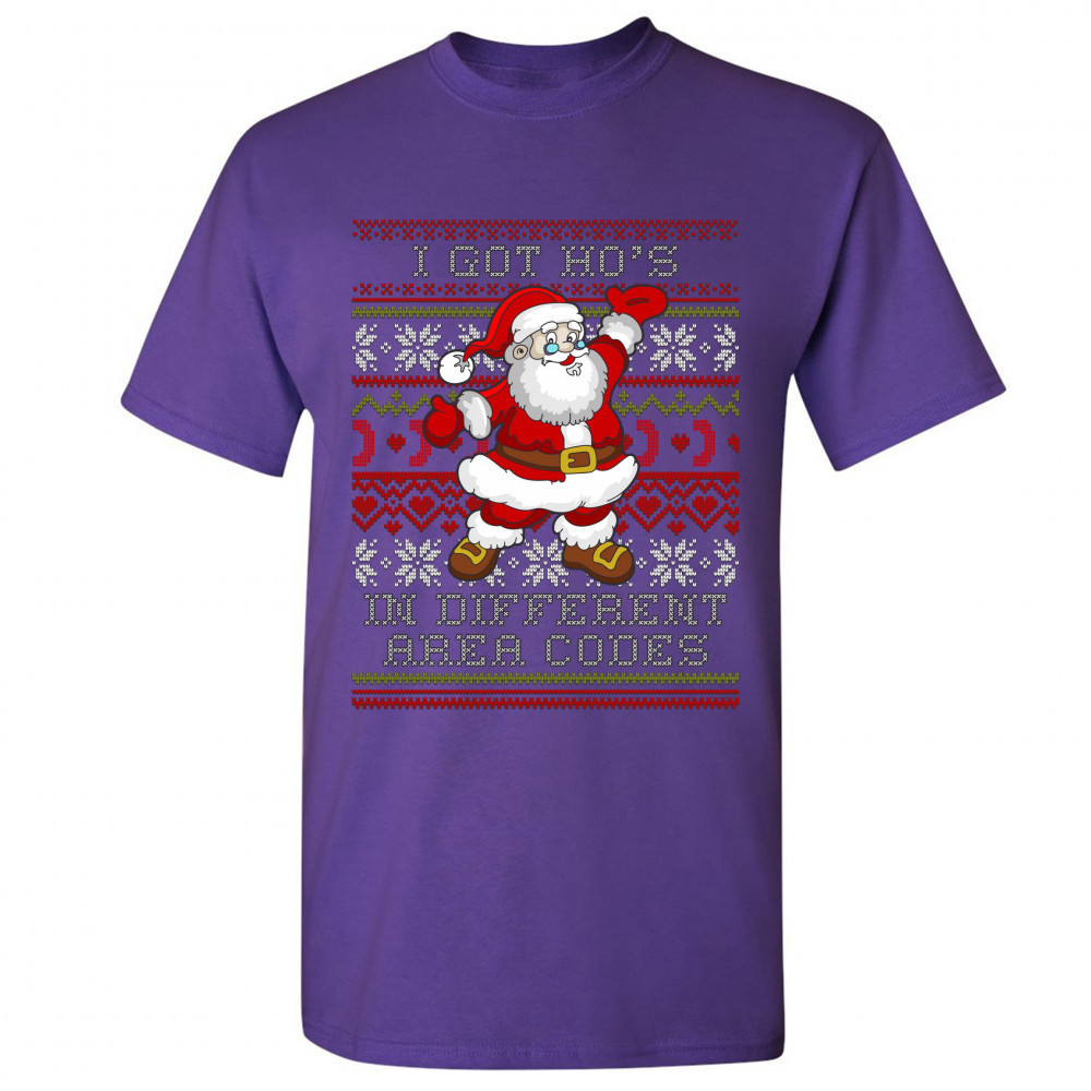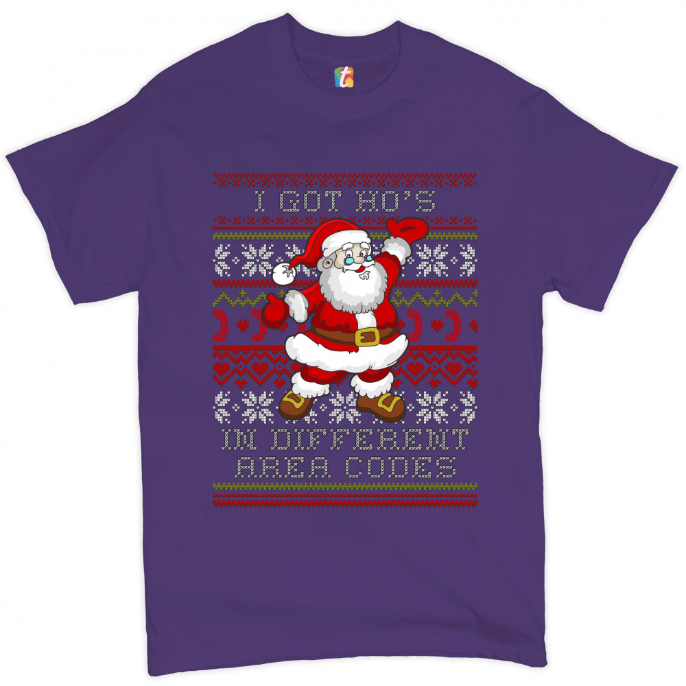 I GOT HO'S IN DIFFERENT AREA CODES t-shirt santa claus ugly sweater men's tee purple