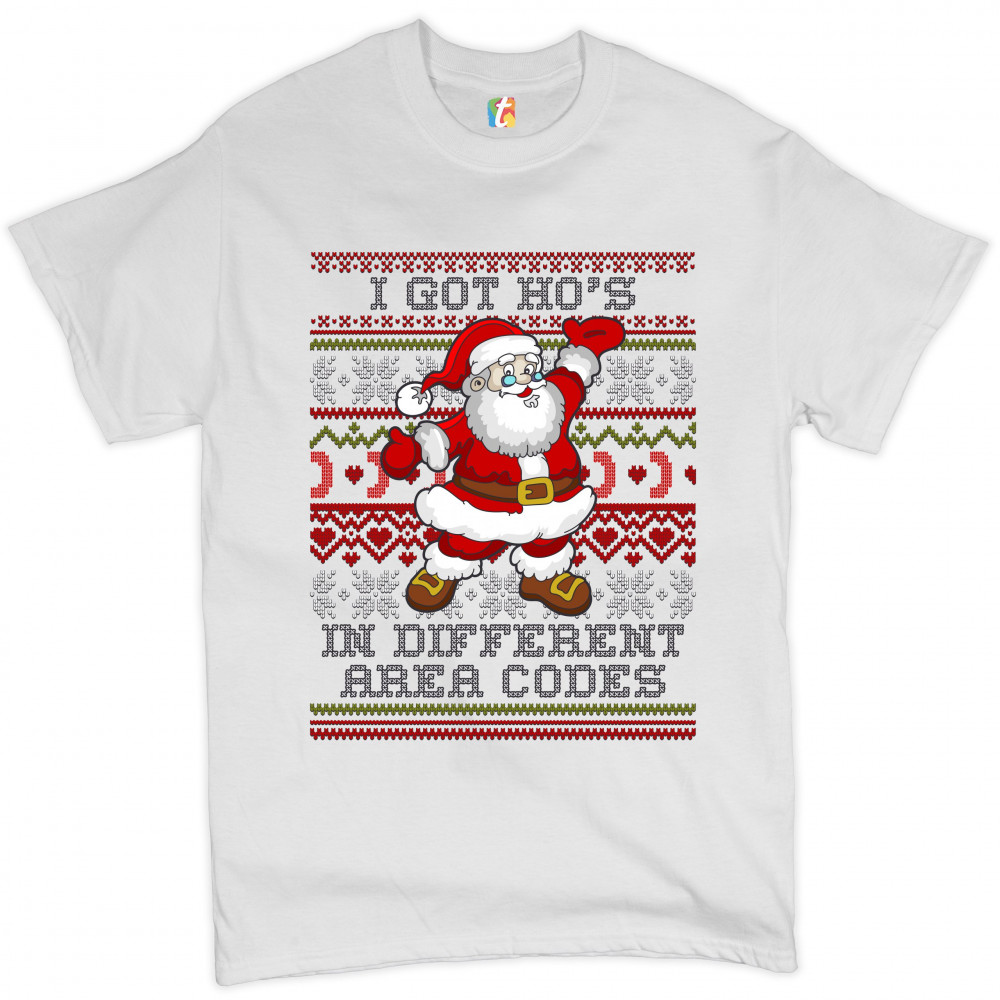 I GOT HO'S IN DIFFERENT AREA CODES t-shirt santa claus ugly sweater men's tee white